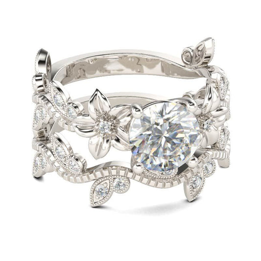 • Floral Design Round Cut Sterling Silver Ring Set-JE-Juri Elle Floral Design Round Cut Sterling Silver Ring Set-JE-Juri Elle