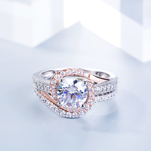 • Two Tone Crown Round Cut Sterling Silver Ring set-JE-Juri Elle Two Tone Crown Round Cut Sterling Silver Ring set-JE-Juri Elle