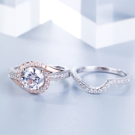 Two Tone Crown Round Cut Sterling Silver Ring set