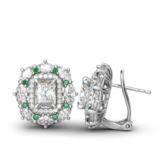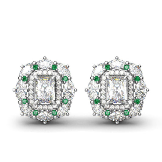 Double Halo Cushion Cut Sterling Silver Ring Set