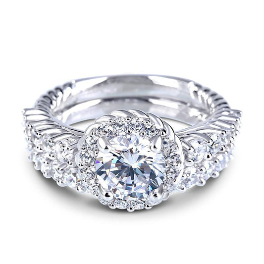 • Split Shank Round Cut Sterling Silver Ring Set-JE-Juri Elle Split Shank Round Cut Sterling Silver Ring Set-JE-Juri Elle