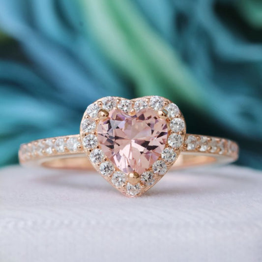 • Halo Heart Cut Synthetic Morganite Sterling Silver Ring-JE-Juri Elle Halo Heart Cut Synthetic Morganite Sterling Silver Ring-JE-Juri Elle