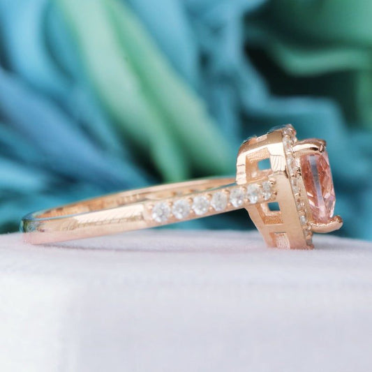 Halo Heart Cut Synthetic Morganite Sterling Silver Ring