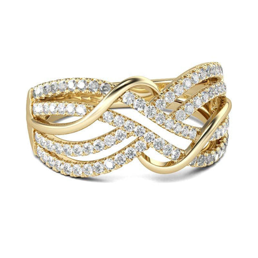 Gold Tone Intertwined Round Cut Sterling Silver Women's Band