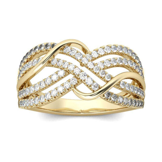 • Gold Tone Intertwined Round Cut Sterling Silver Women's Band-JE-Juri Elle Gold Tone Intertwined Round Cut Sterling Silver Women's Band-JE-Juri Elle