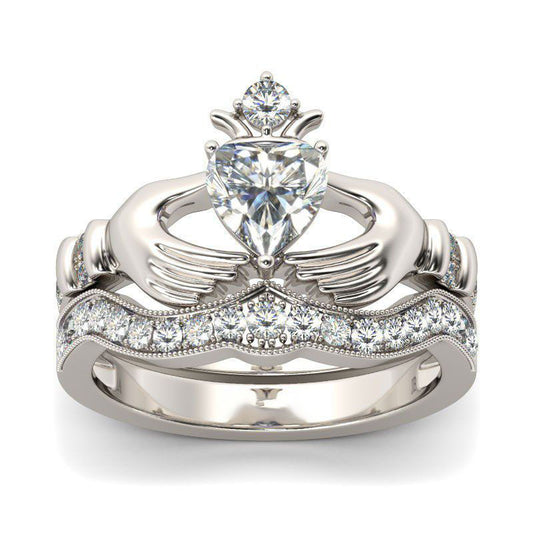 • Simple Crown Claddagh Sterling Silver Ring Set-JE-Juri Elle Simple Crown Claddagh Sterling Silver Ring Set-JE-Juri Elle