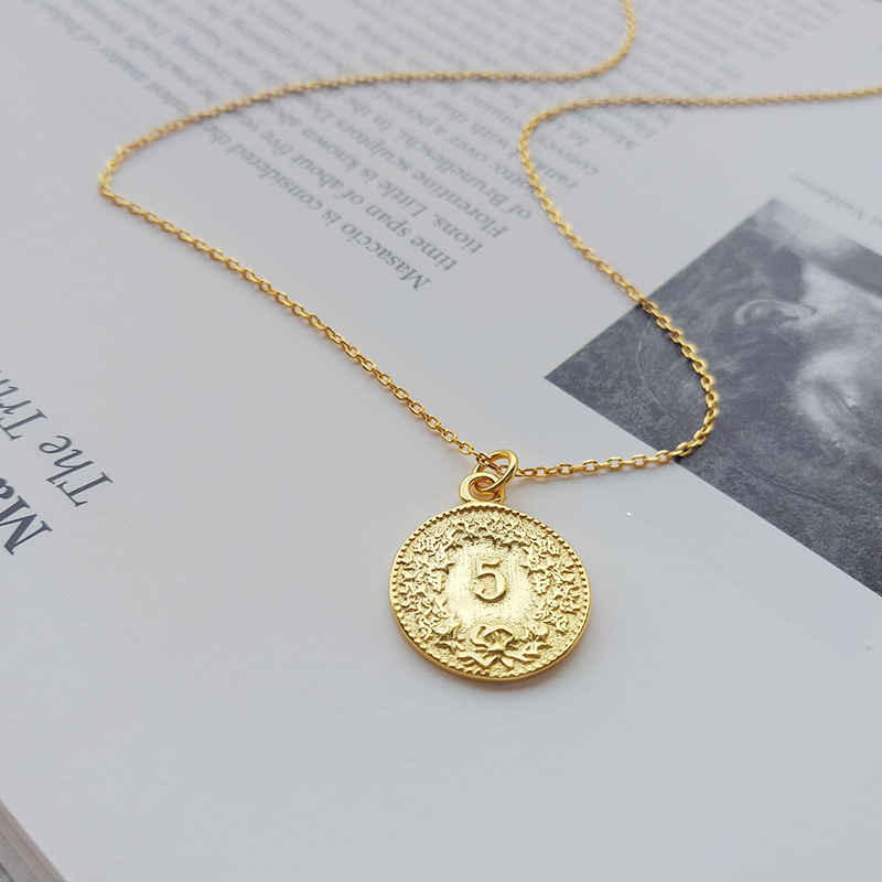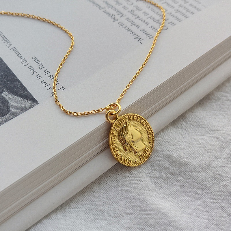 Portrait Coin Sterling Silver Plated Gold Necklace