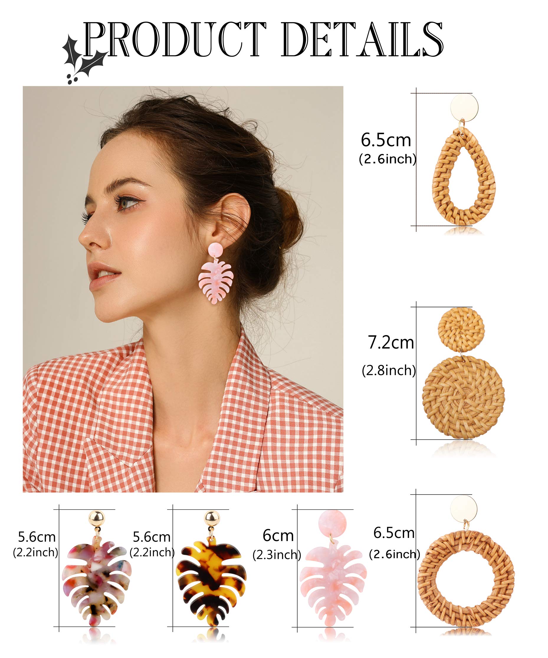 【Natural Material】These Rattan Earrings are Made From 100% Natural Rattan Fiber With Elaborate Hand Woven Knit by Artisans. Acrylic Earrings are Made From Mottled Resin,Lightweight,Delicate and Stylish.Ear Pins are Made with 316L Stainless Steel,Hypoallergenic and Safety,No Harm to Your Sensitive Skin. 【Fit Occasions】These Set of Drop Dangle Earrings Suitable for All of the Occasions,Such as:Wedding, Engagements, Prom,Party,Birthday Party,Graduation,Concert,Working or Daily Casual Wear.It Can be Used With Any Style of Clothing. 【Surprise Gift】These Cute and Dainty Bohemian Drop Earrings With Unique Style Bring You Beautiful Mood Everyday,Accessory for Women and Teen Girls,Suitable for All Occasions with Different Outfits.You can Send it as a Perfect Gift to Your Mum,Wife,Sister,Girlfriend,Female Friend or for Yourself. |