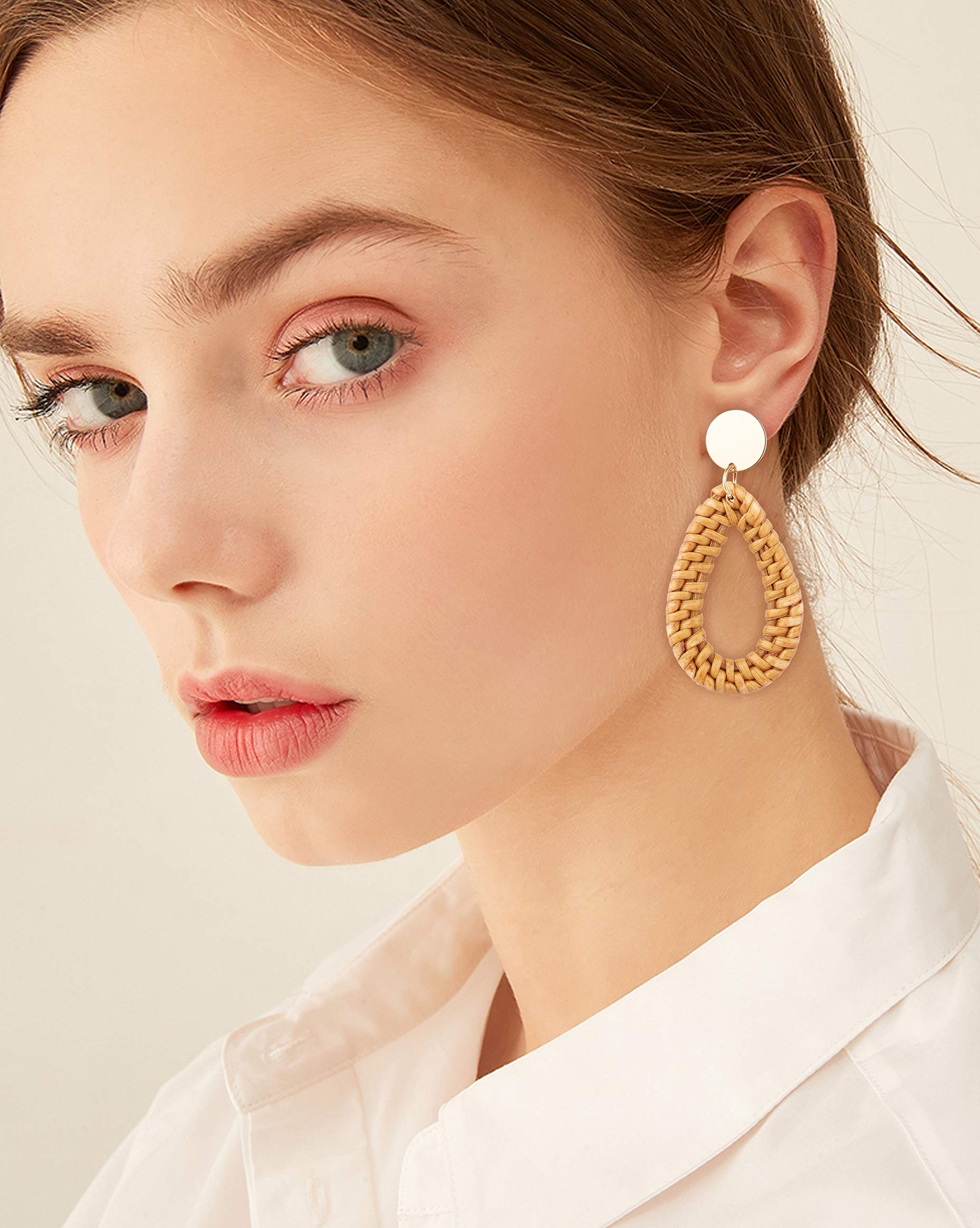Acrylic Rattan Earrings for Women Handmade Bohemian Straw Wicker Braid Drop Dangle Earrings Lightweight Geometric Statement Earrings