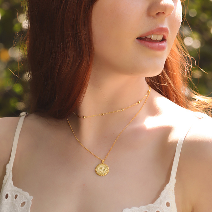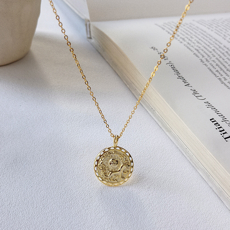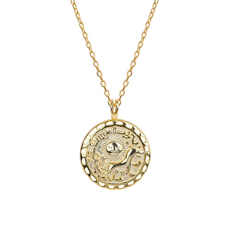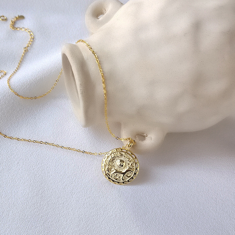Embossed Dog Sterling Silver Plated Gold Necklace