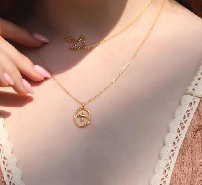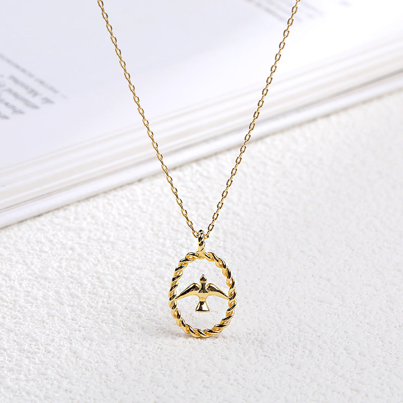 Golden Swallow Sterling Silver Plated Gold Necklace