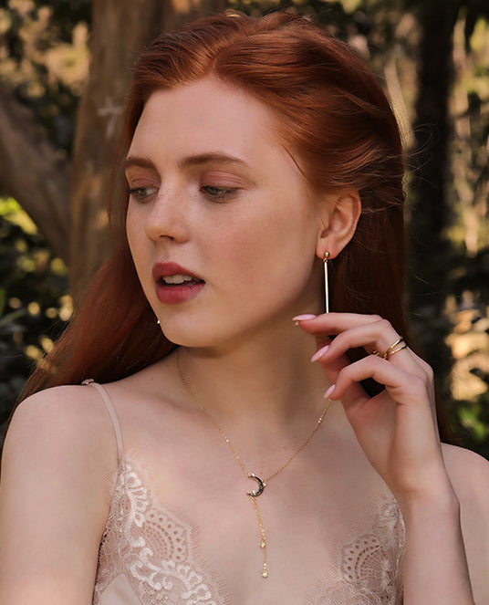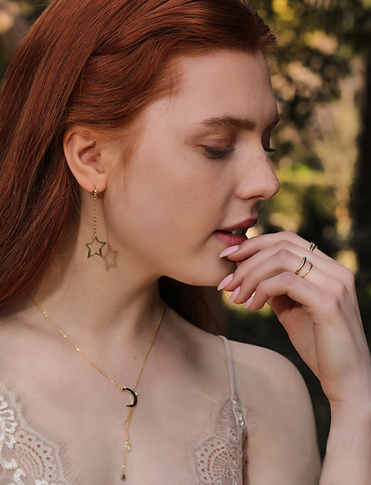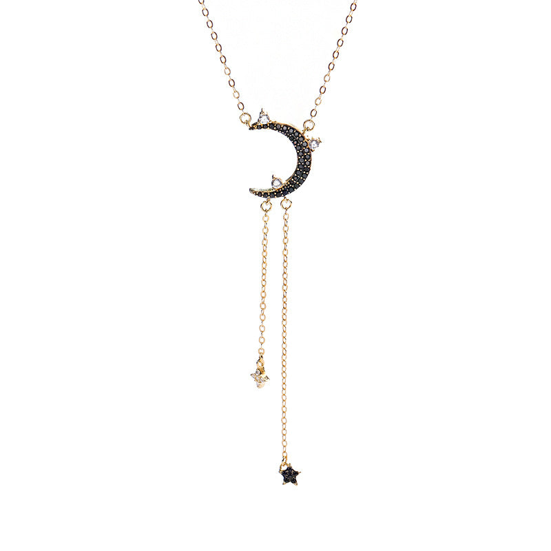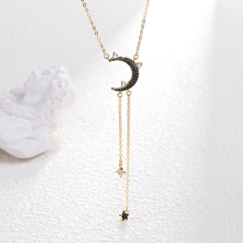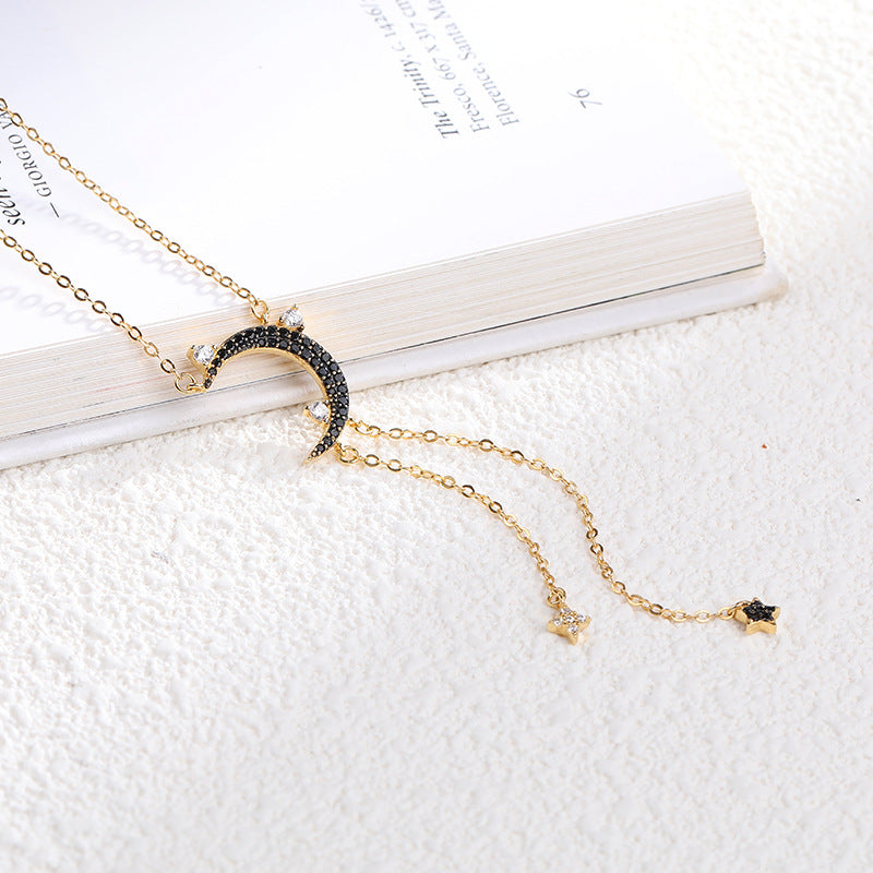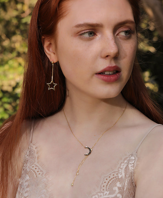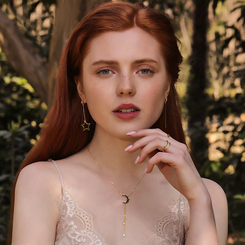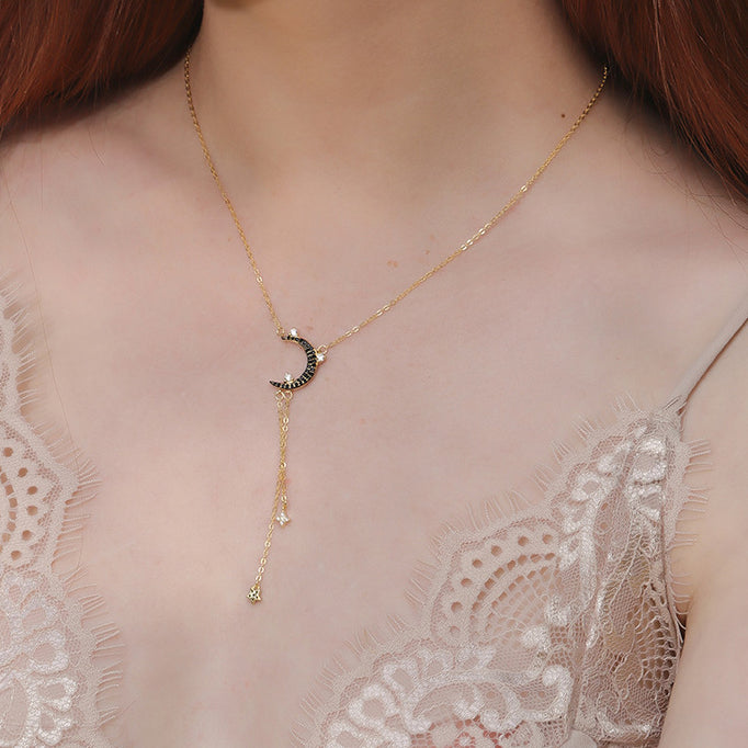 Star&Moon Tassel Round Cut Sterling Silver Plated Gold Necklace