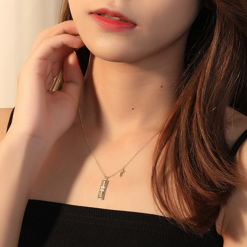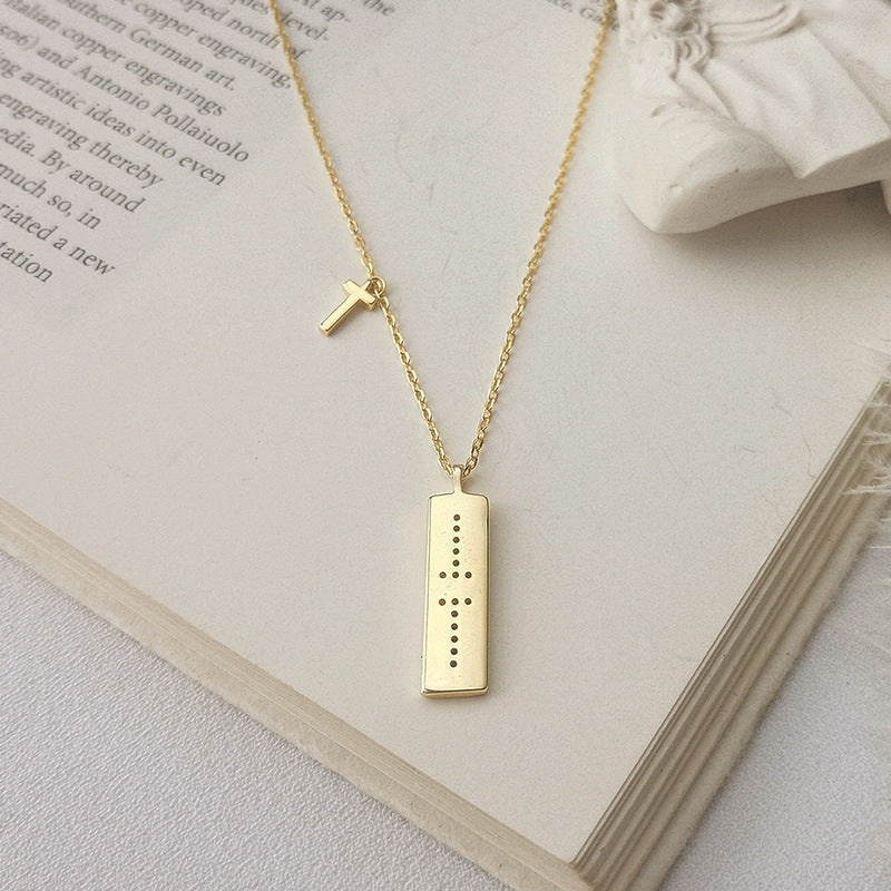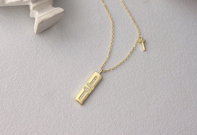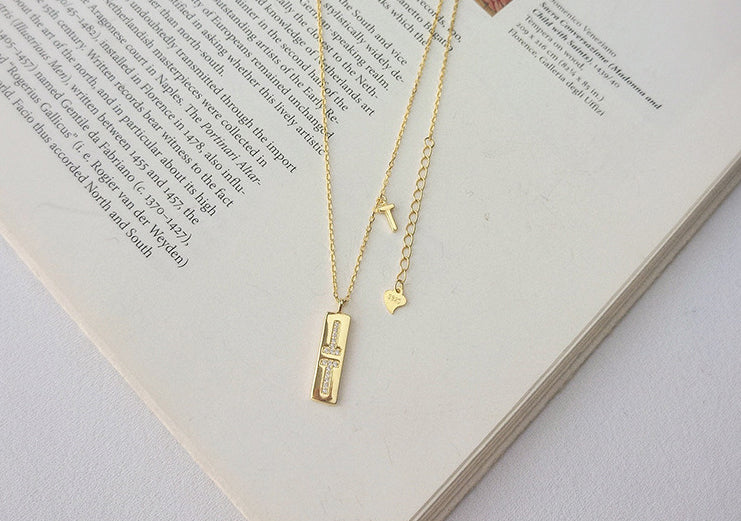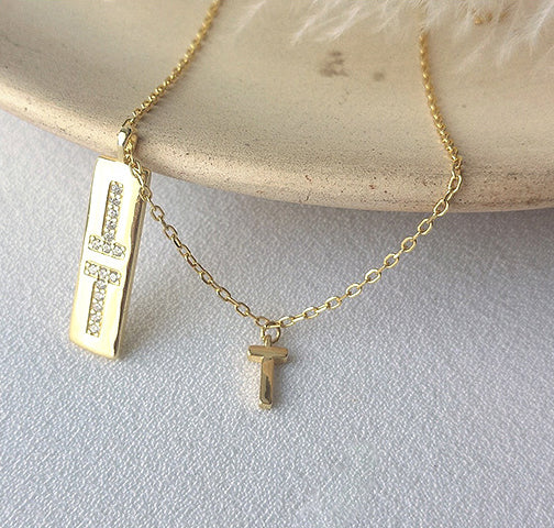 T-shaped Cross Round Cut Sterling Silver Plated Gold Necklace