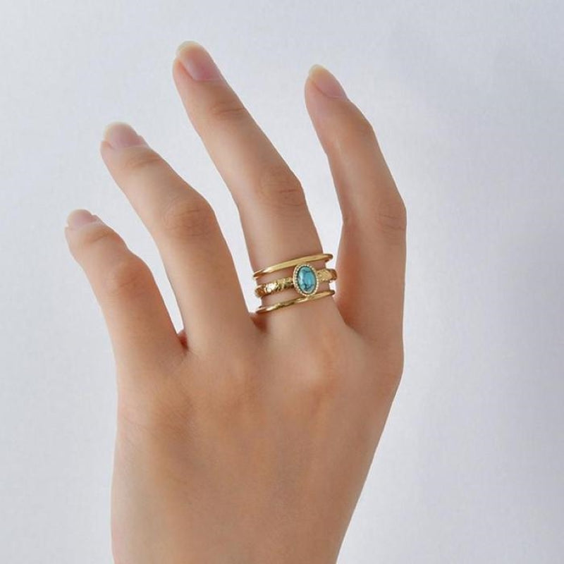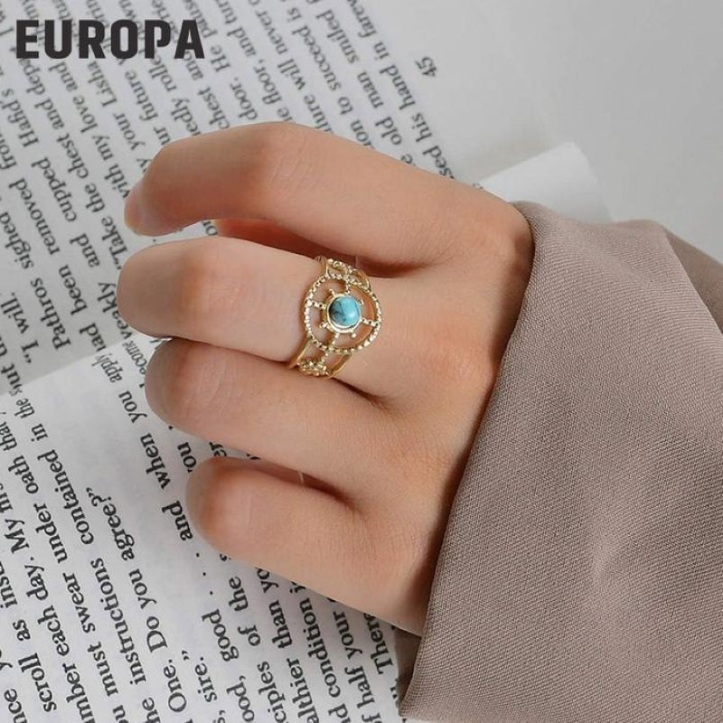 Bohemian Compass Blue Turquoise Opening Ring