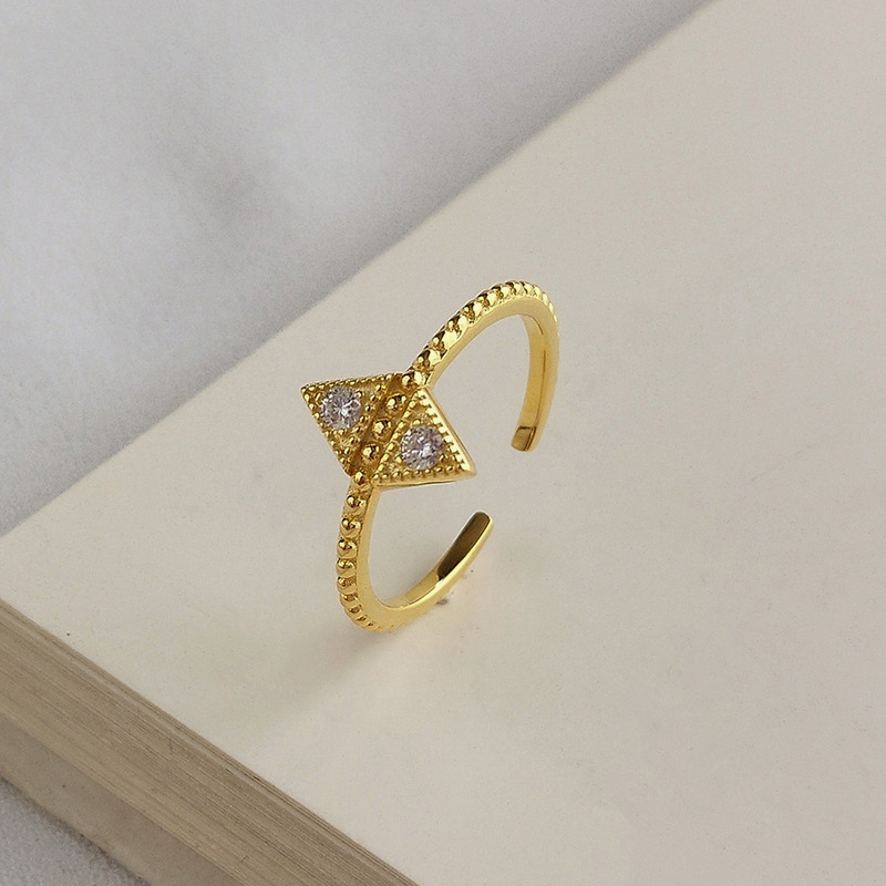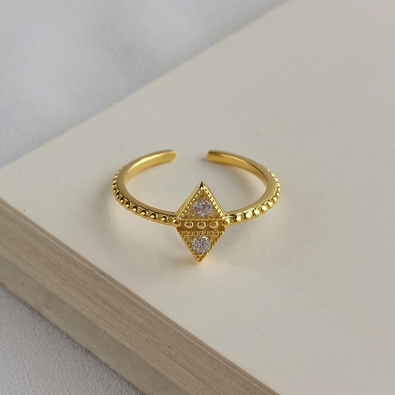 Triangle Beads Round Cut Sterling Silver Plated Gold Ring
