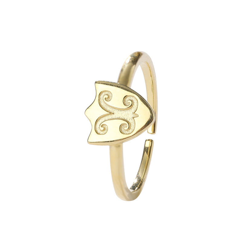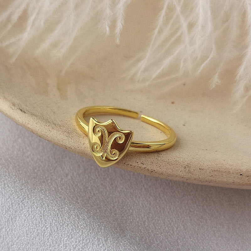 Shield Opening Adjustable Sterling Silver Plated Gold Ring