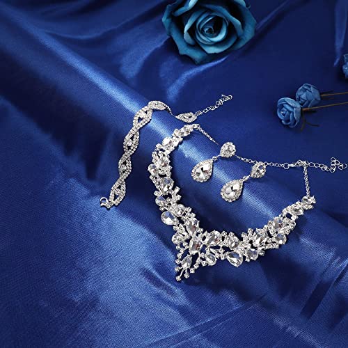 【💎 WEDDING JEWELRY SETS】:Dainty bridal jewelry set inlaid with rhinestone contains 1 shiny prom necklace,1 teardrop bracelet and 1 pair of earrings are best choice when you are going to a wedding or banquet,the sparkling jewelry set can make you stand out in the crowd