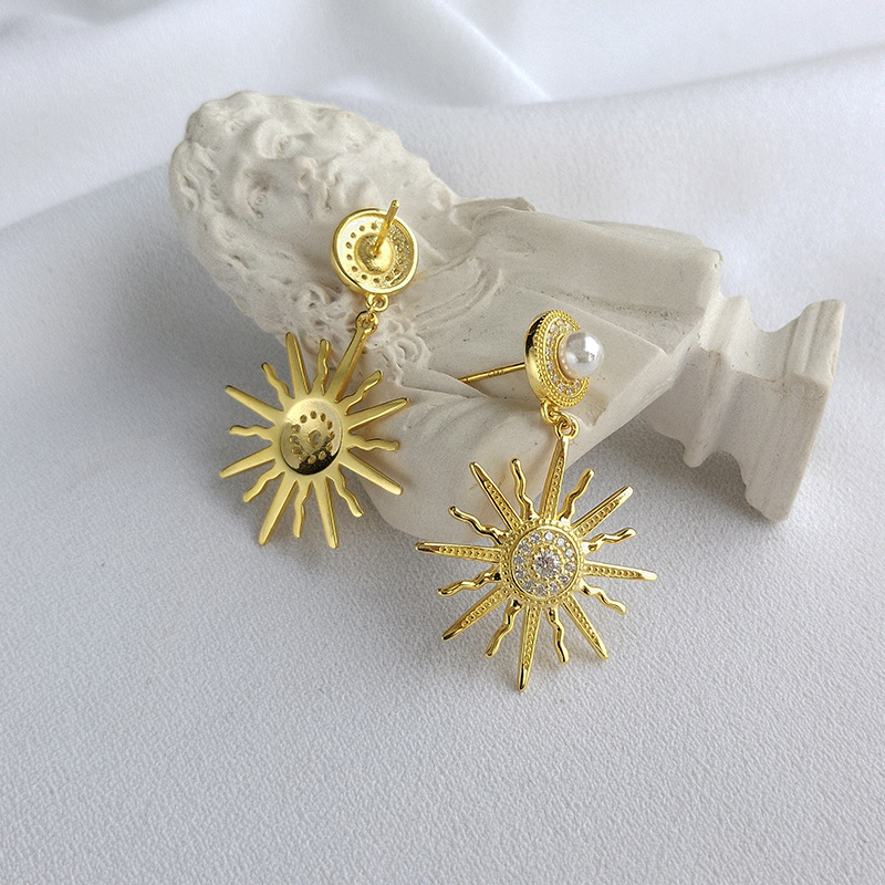 Golden Sun Flower Round Cut Sterling Silver Plated Gold Stud Earring