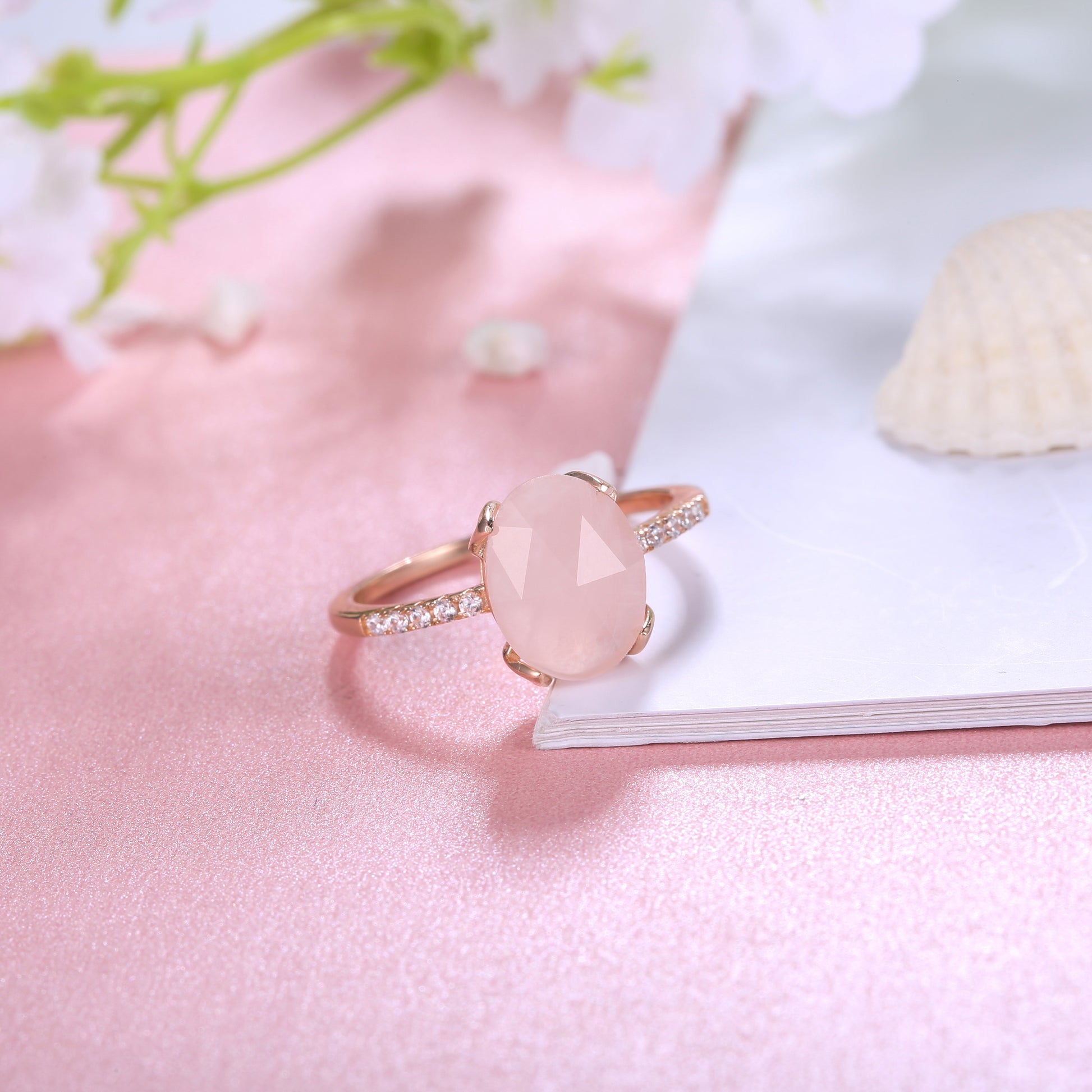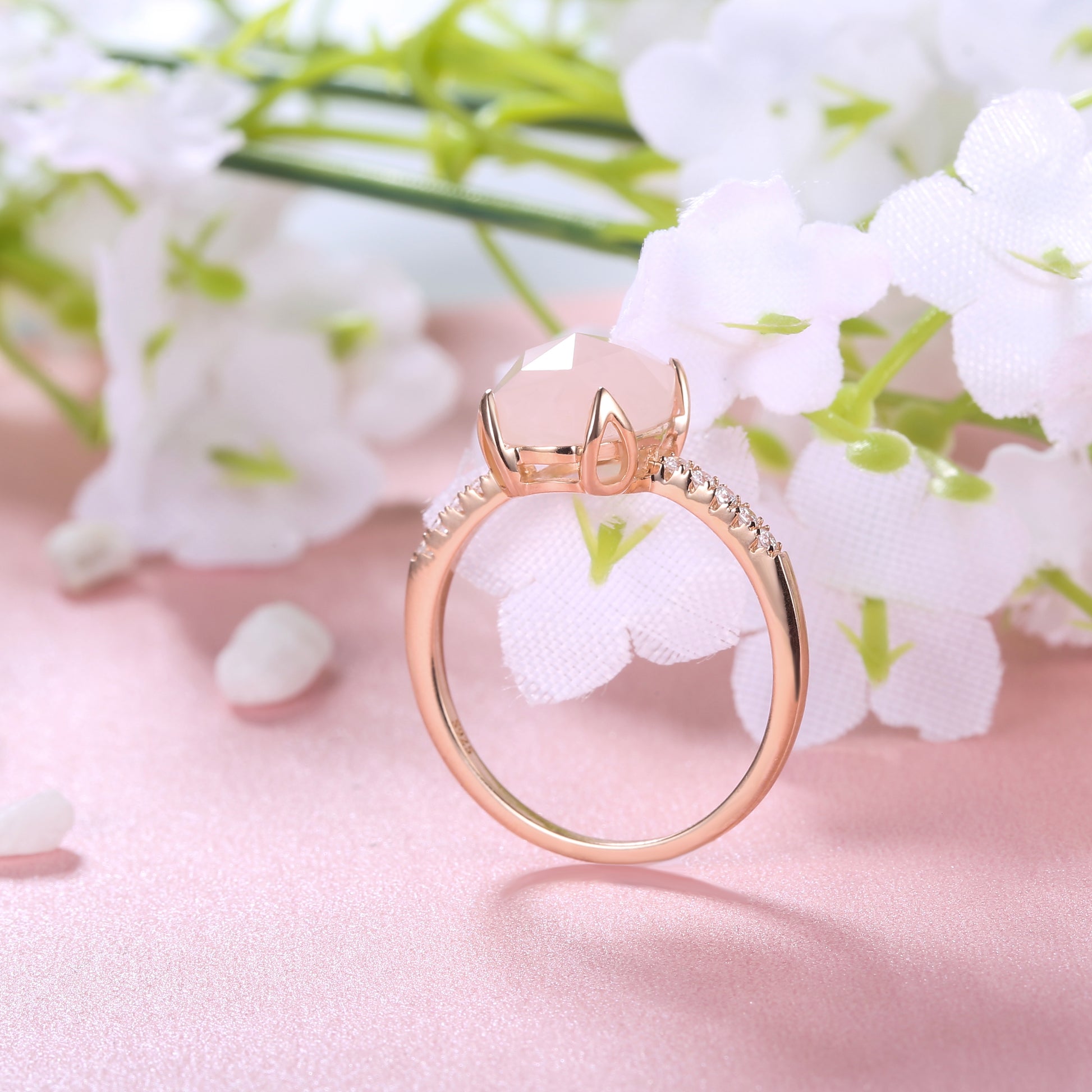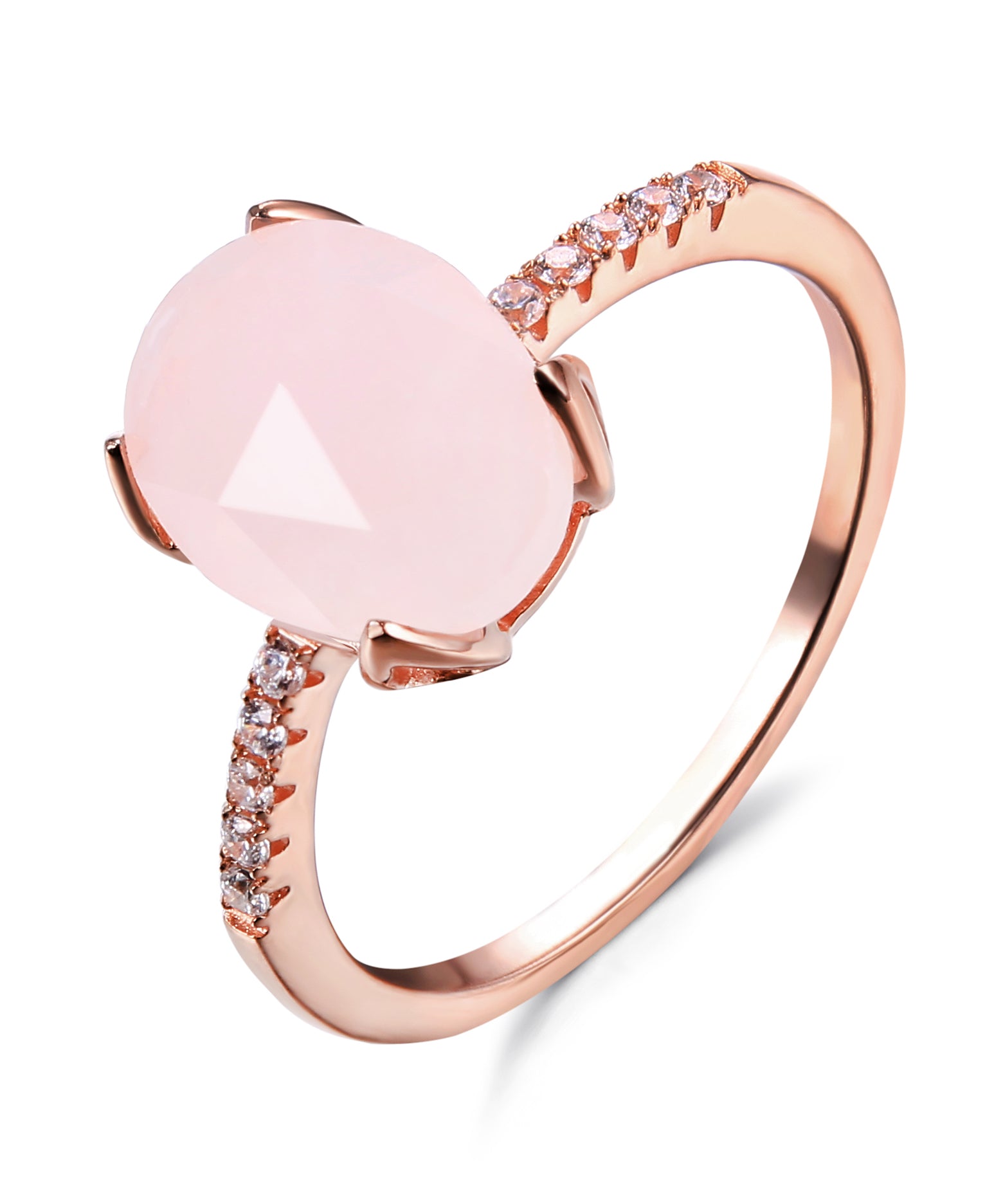 The Moonstone Ring - Harlow is the epitome of sophistication. Five white topaz stones encrust each side of the fine band, bordering a resplendent faceted moonstone.