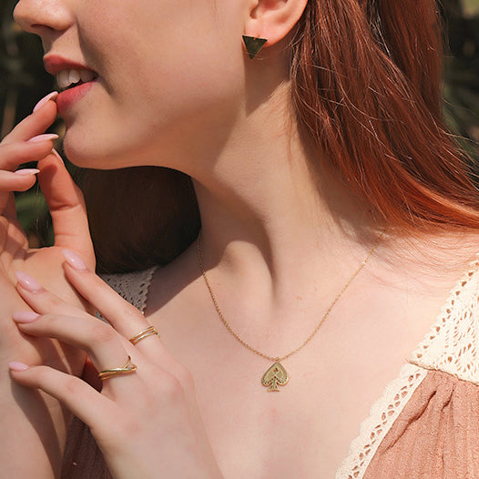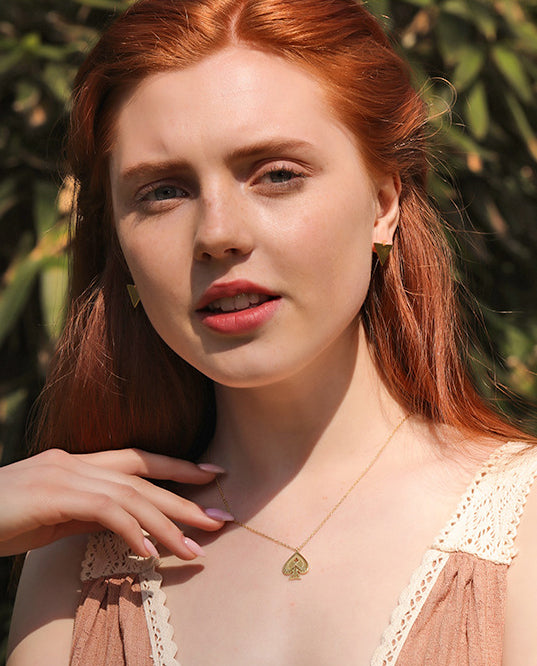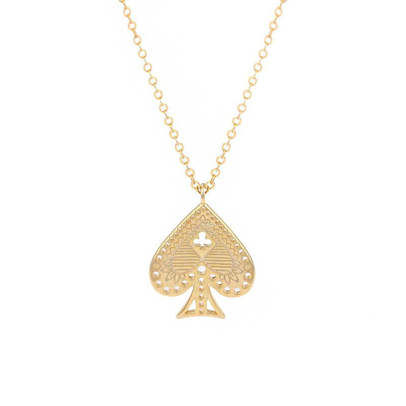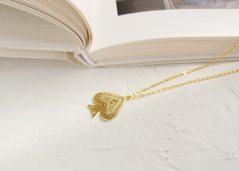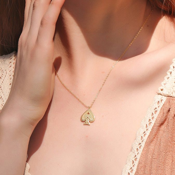 Poker Card Heart Sterling Silver Plated Gold Necklace