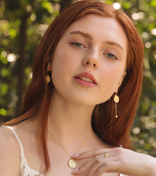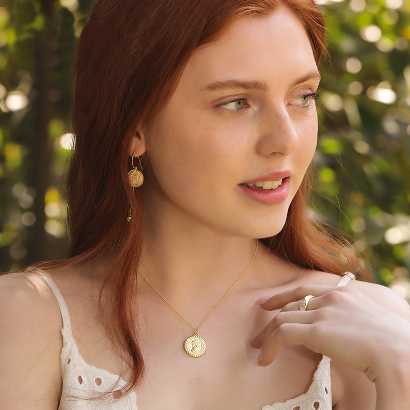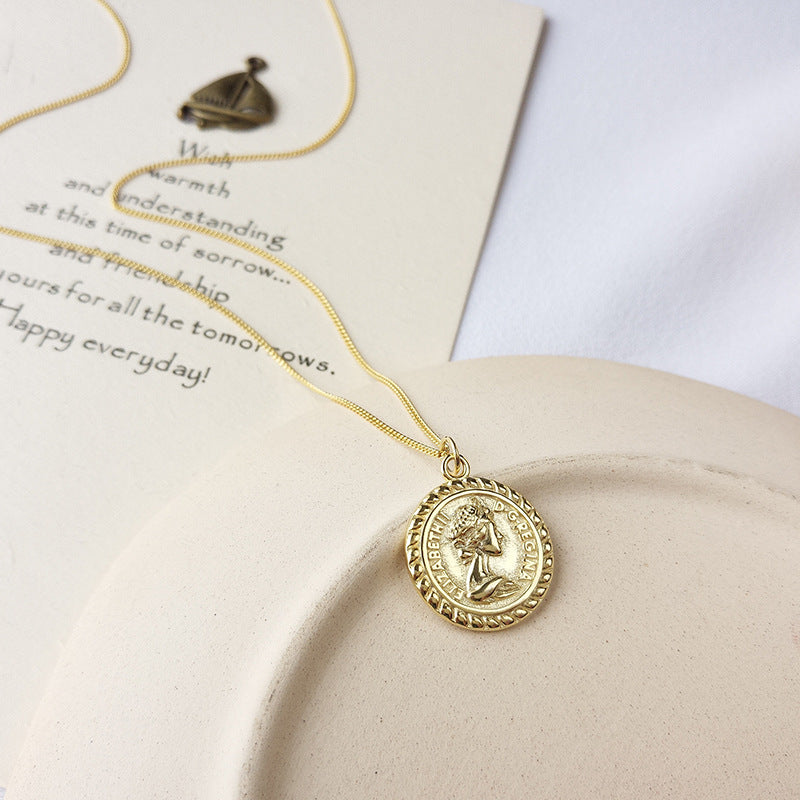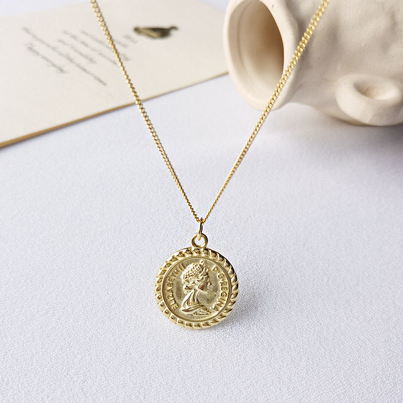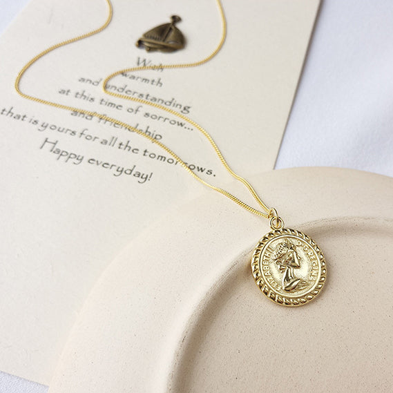 Portrait Lettering Coin Sterling Silver Plated Gold Necklace