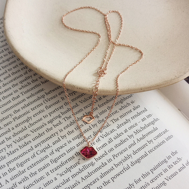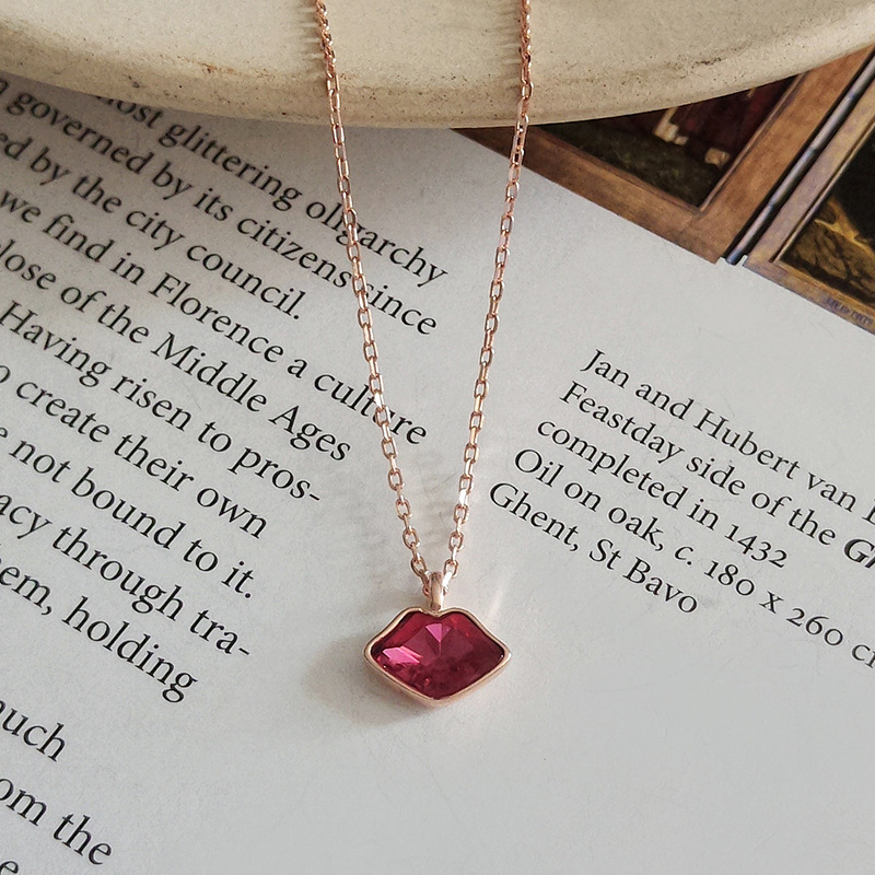 Red Lips Temptation Sterling Silver Plated Rose Gold Necklace
