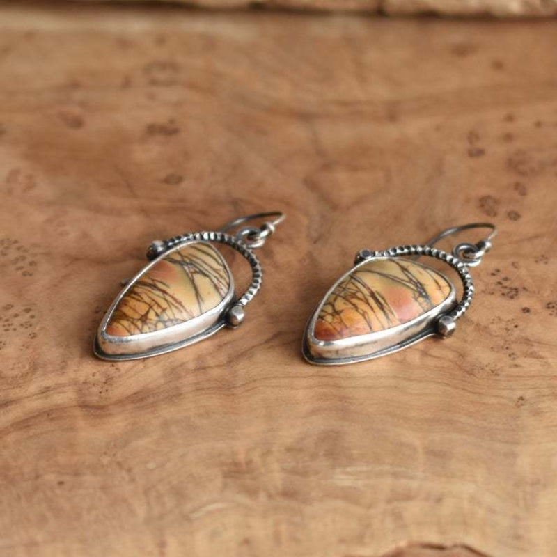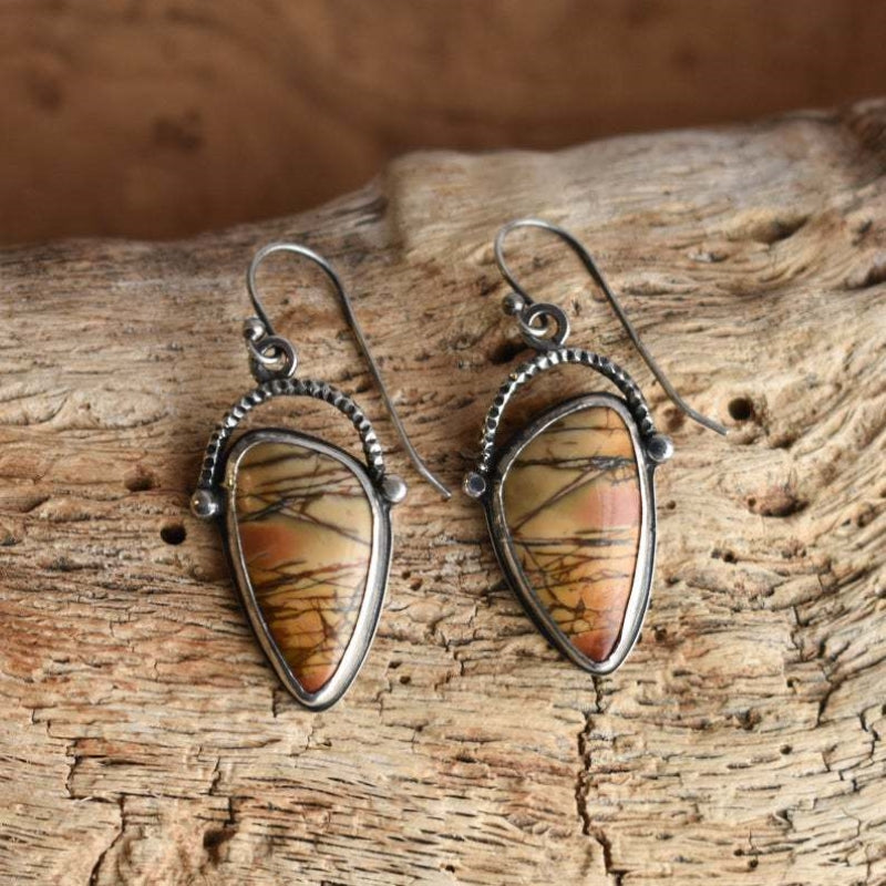 Bohemian Water Drop Yellow Tiger Stone Drop Earrings