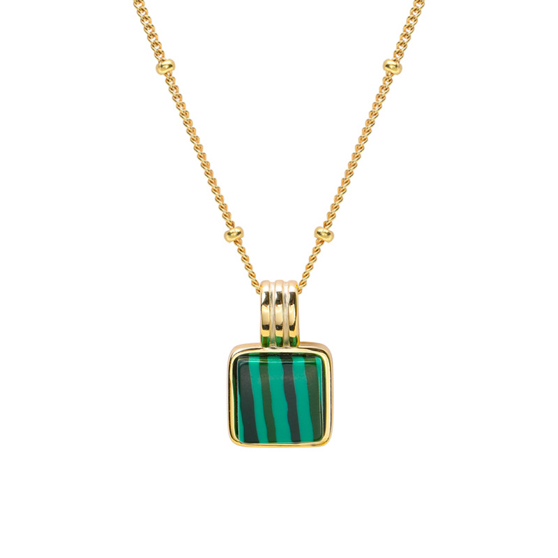 Classic Malachite Sterling Silver Plated Gold Necklace