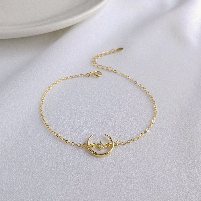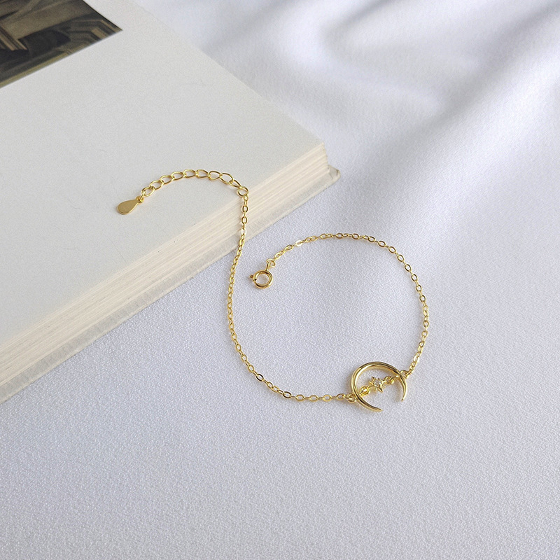 Elegant Crescent Round Cut Sterling Silver Plated Gold Bracelet