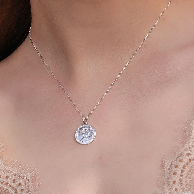 Elizabeth Portrait Coin Sterling Silver Necklace