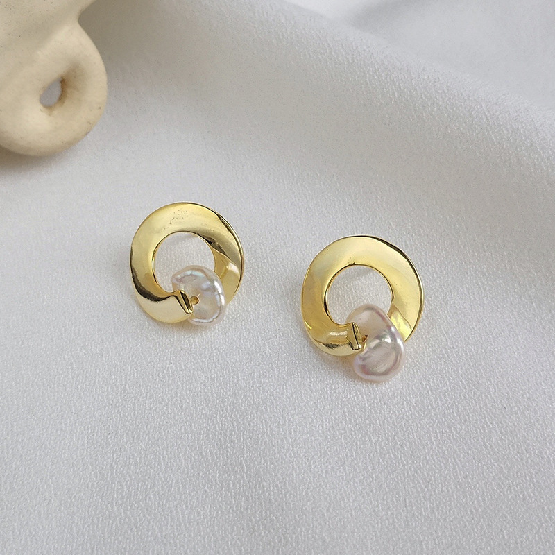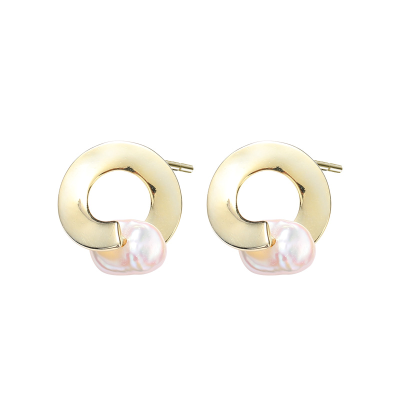 Shaped Baroque Pearl Sterling Silver Plated Gold Stud Earring