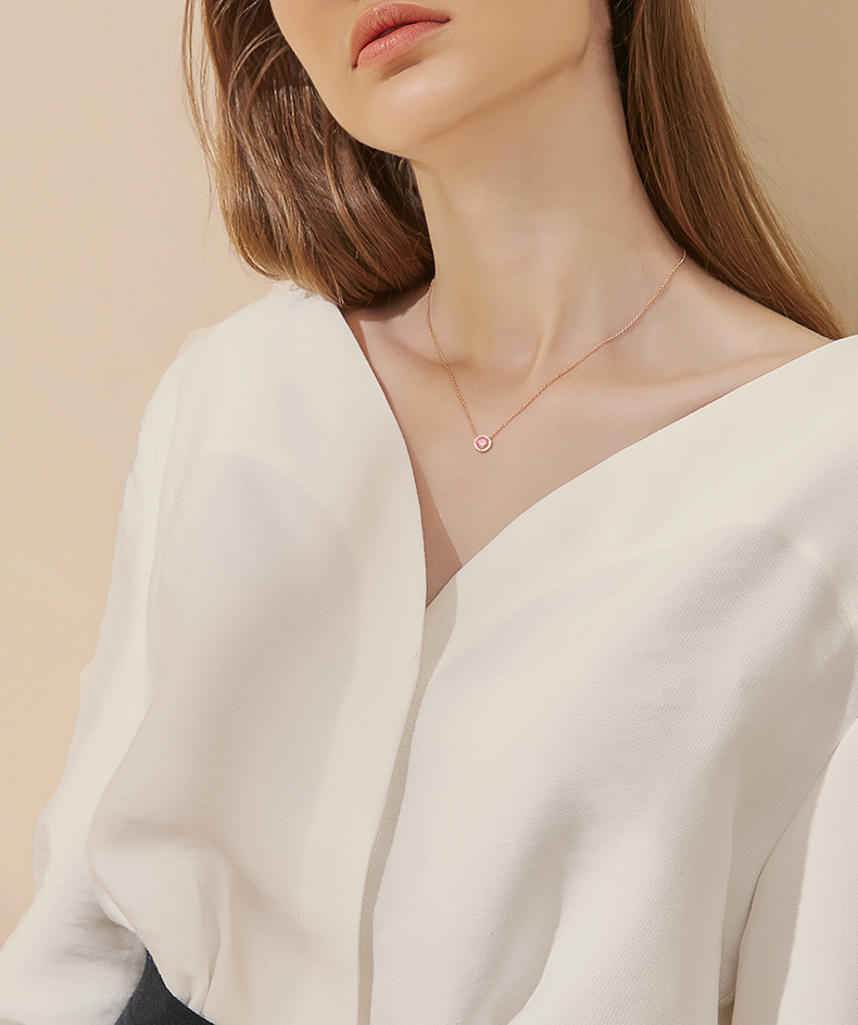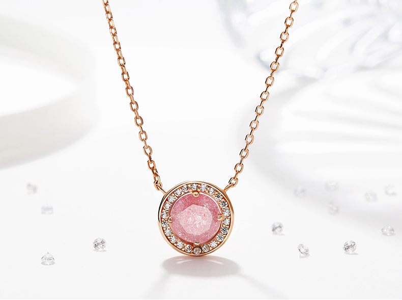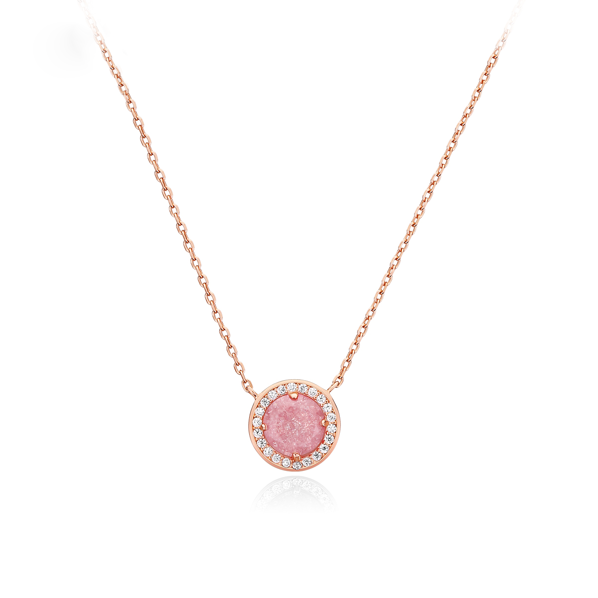 Elegant and delicate, this necklace makes an adorable gift for yourself or loved one. Crafted in high quality 925 silver, this necklace showcases a pink round-cut stone standing in four-prong setting and a halo frame of smaller round stones wraps this center stone in a sparkling embrace to make a sense of lovely. A shimmering token of your affection, this necklace will be surely appreciate.