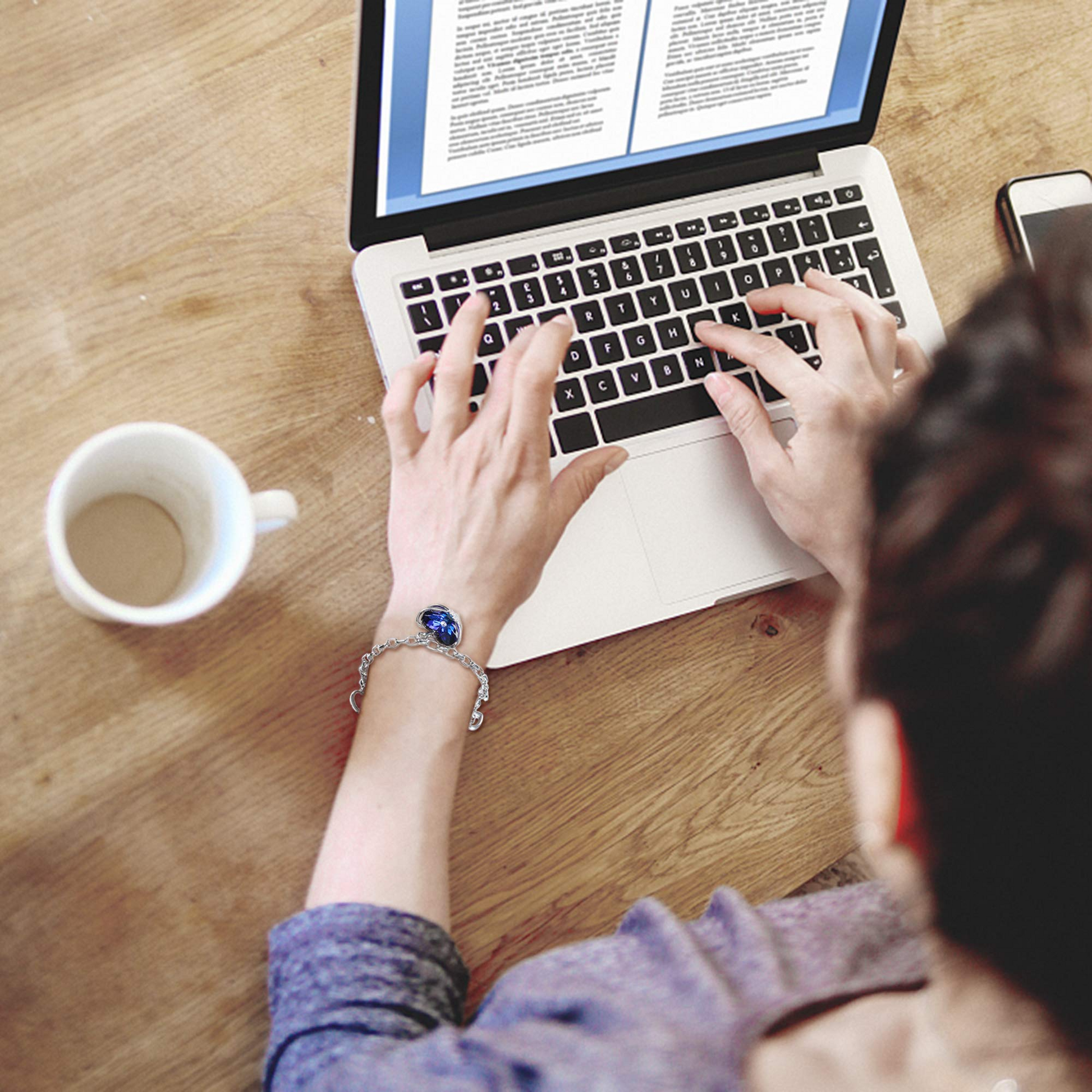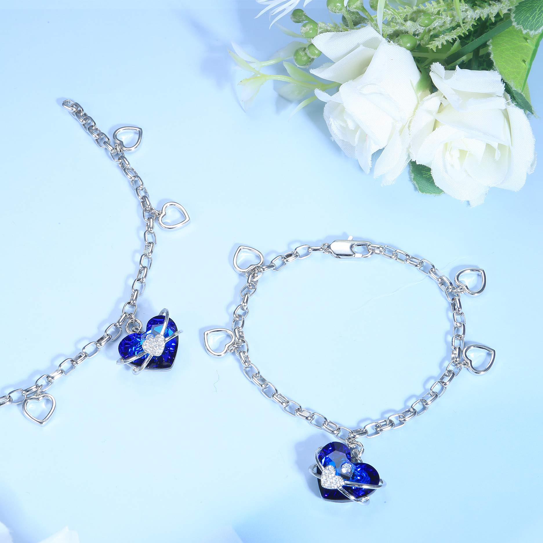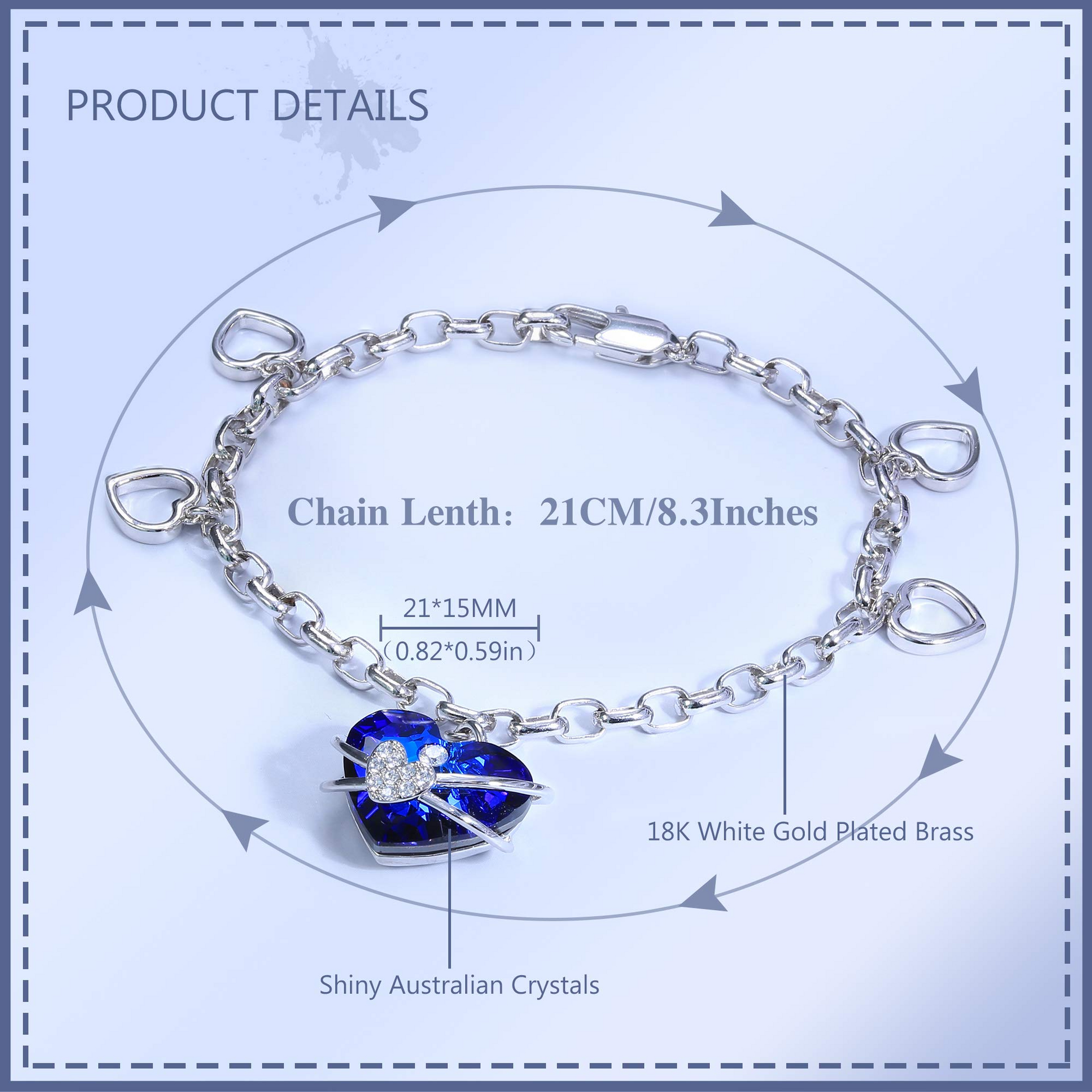 Stone size 21*15MM(0.82*0.59in). Measures 8.3 inches in Length.The exquisite heart charm bracelet is embellished with sparkling Austria stones, which has special blue light, Looks elegant & peaceful, Match for any clothing such as one-piece dress, shirts or jeans, it is very practical for girl's daily outfit. Suit for dating or a anniversary party. It is definately a fashion item for any lady's closet.