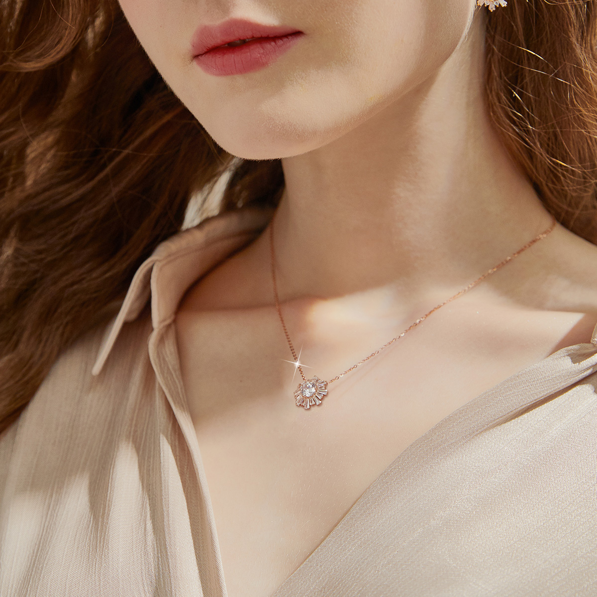 Exquis et magnifique, ce collier capturera votre cœur au premier regard. Ce collier pendentif ressemble à un soleil scintillant de zircone swarovski pour créer un look étincelant et luxueux. Fabriqué en argent sterling, il est durable et confortable à porter au quotidien. Ajoutez ce chef-d'œuvre à votre boîte à bijoux et vous ne serez pas déçu.