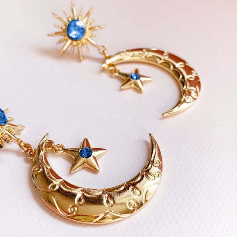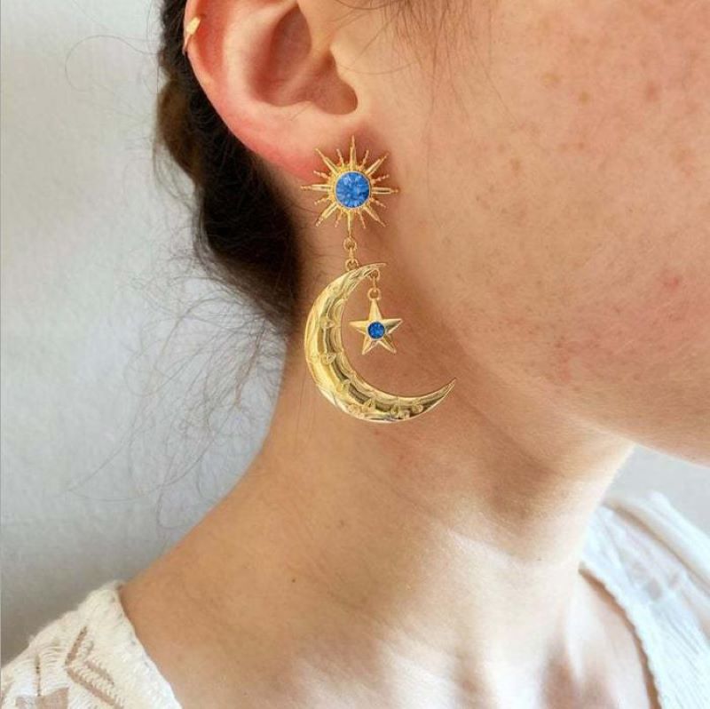 Boucles d'Oreilles Bohème Soleil Etoile Lune