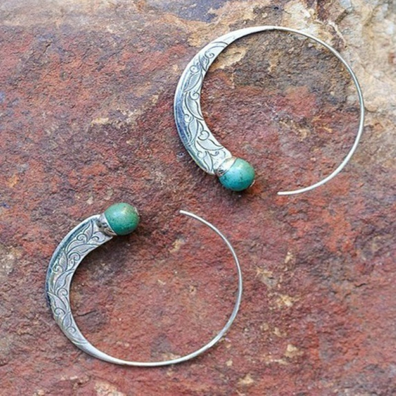 Boucles d'oreilles bohèmes vintage thaïlandaises en argent turquoise