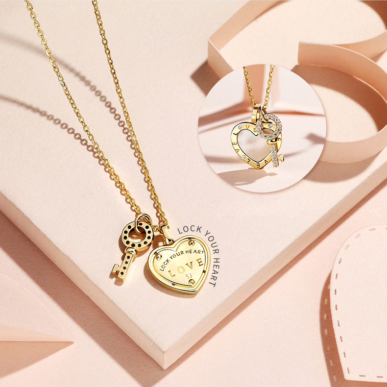 Unlock Love Collier en argent sterling plaqué or 14 carats à coupe ronde