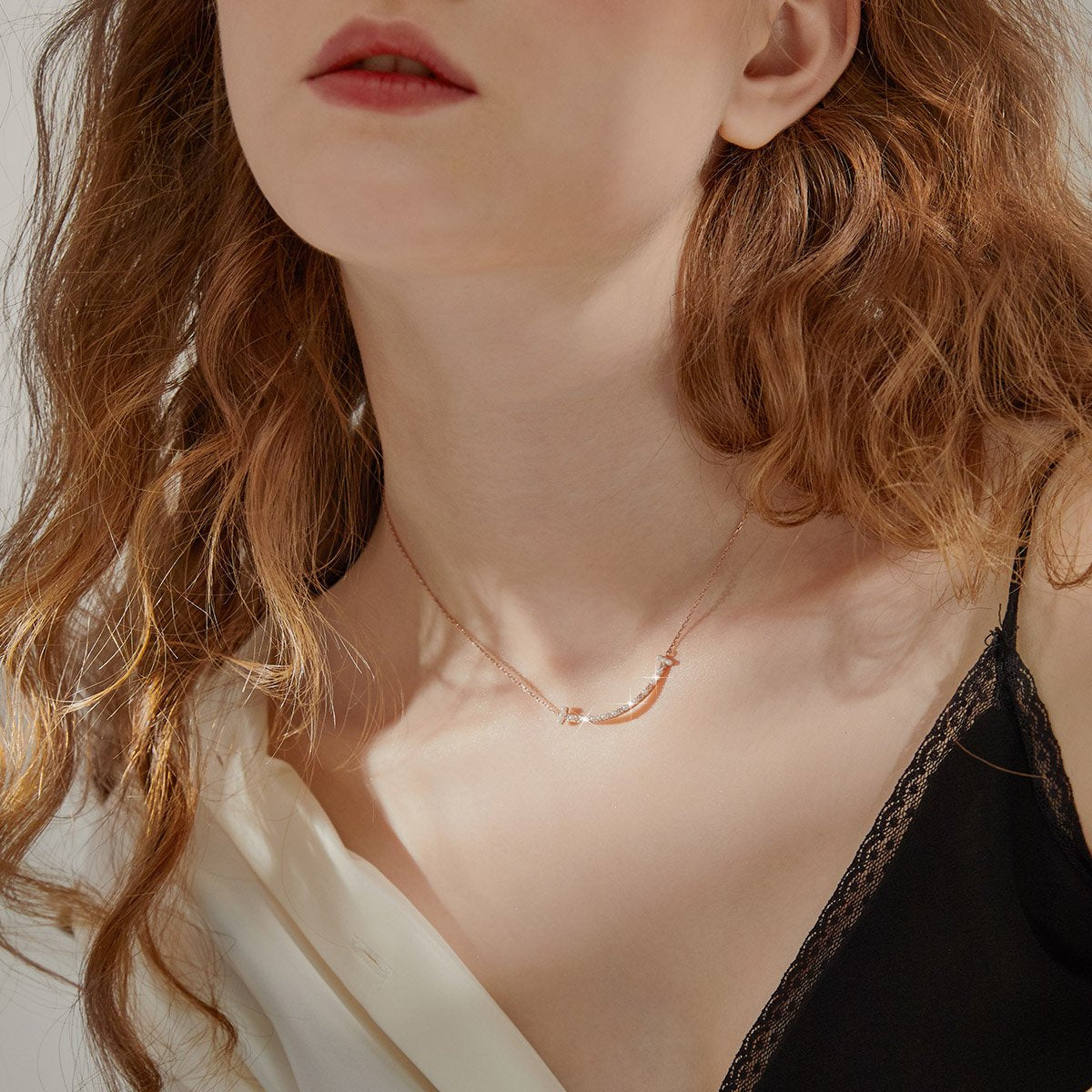 Simple and classic, this smile arc necklace makes an adorable gift for loved one. The smile arc is one of the most popular motifs in life. It's always related with love. Crafted in sterling silver, some sparkling gemstones set in the arc to create a eye-catching look.It will certain to show a sparkling and elegant look around your neck. Treat yourself or surprise her with this lovely piece.