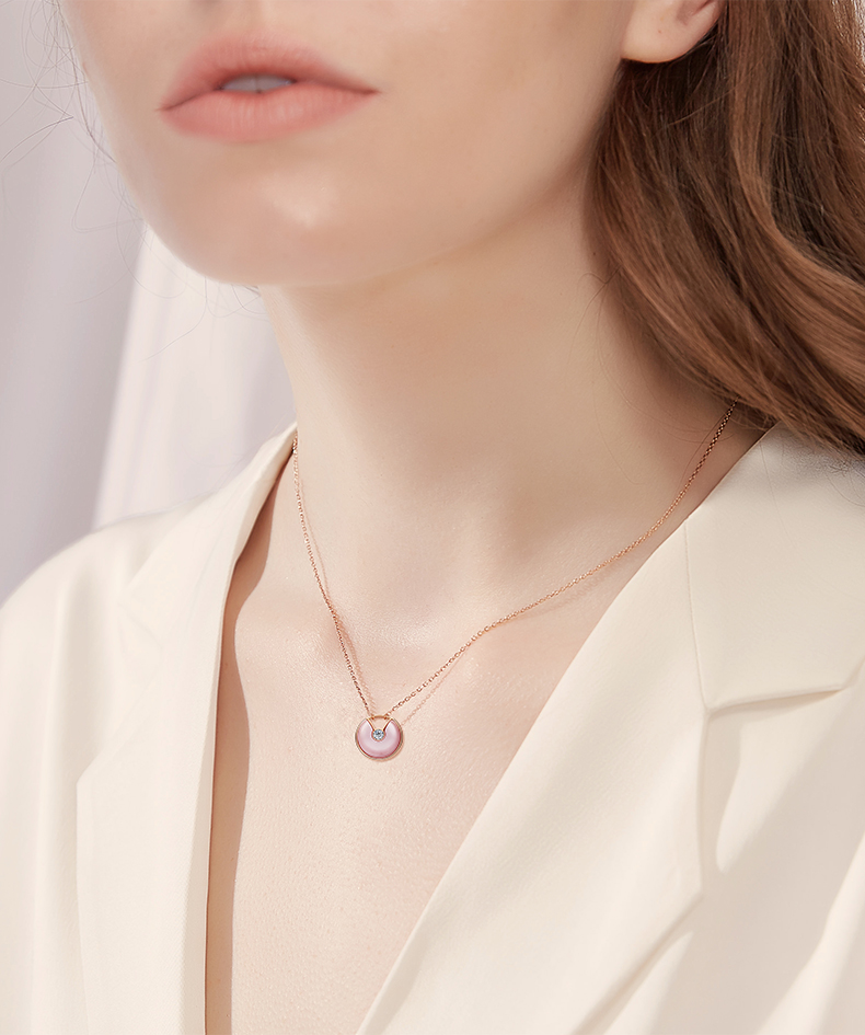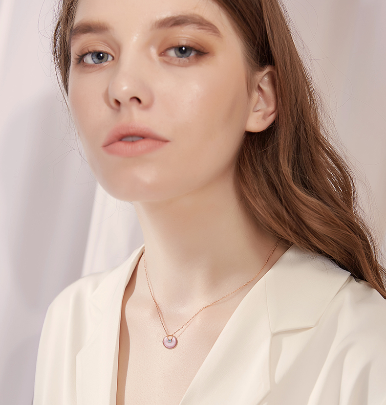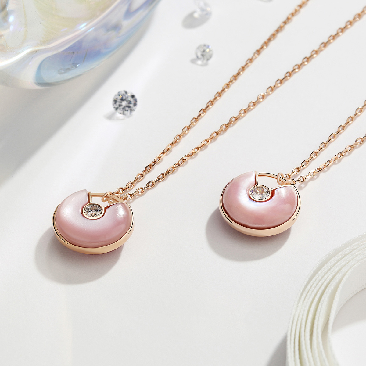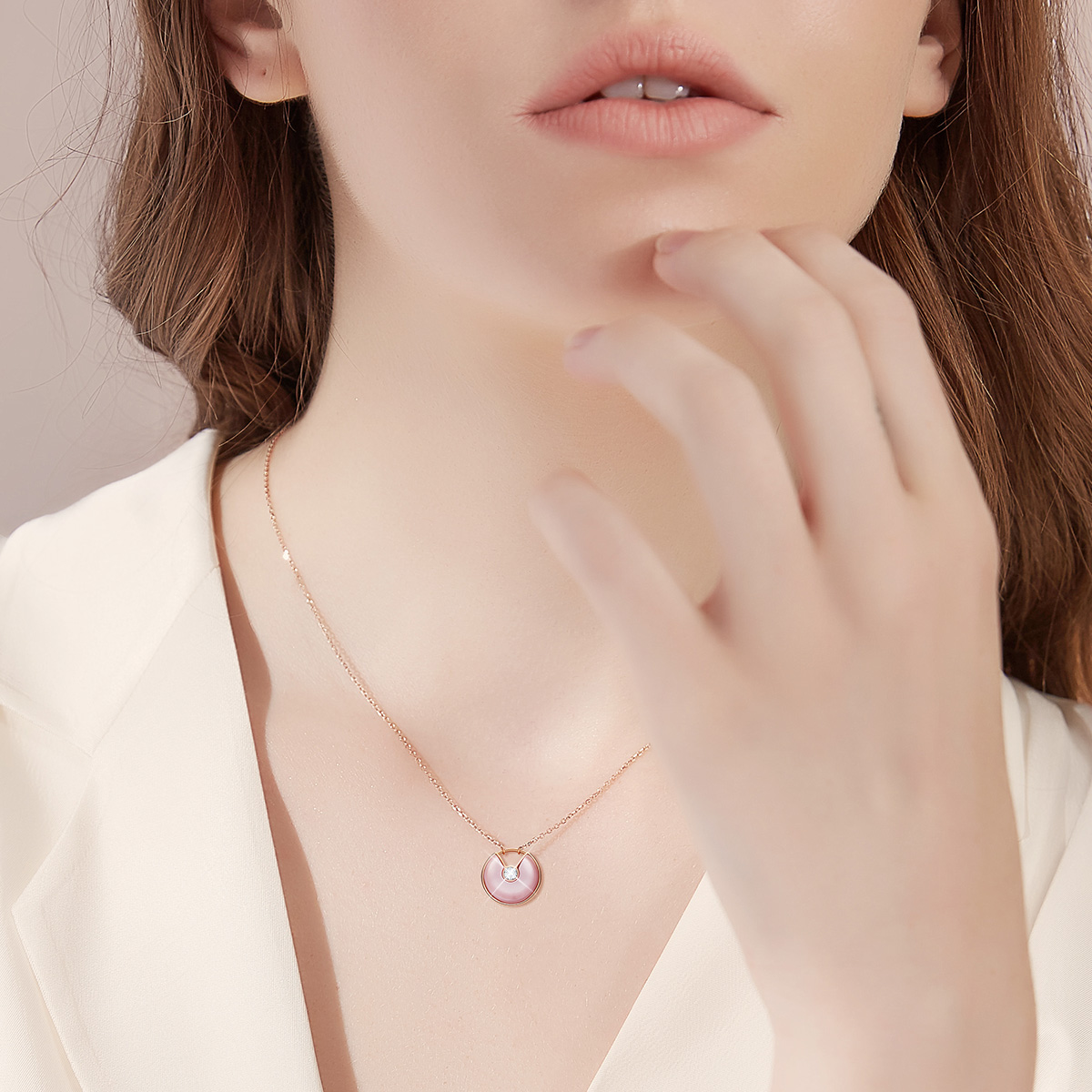 Peace Buckle Mother Shellfish Round Cut Sterling Silver Necklace