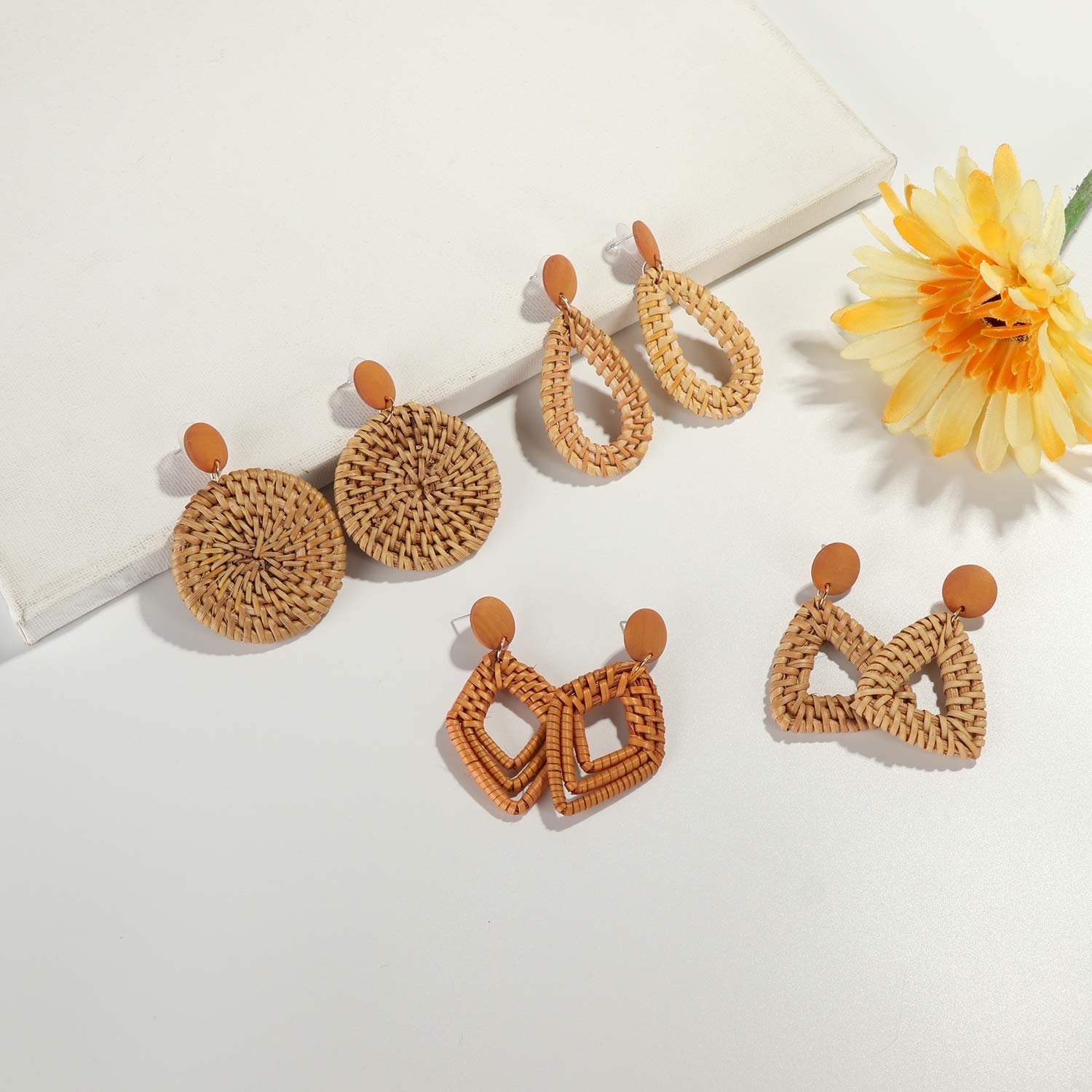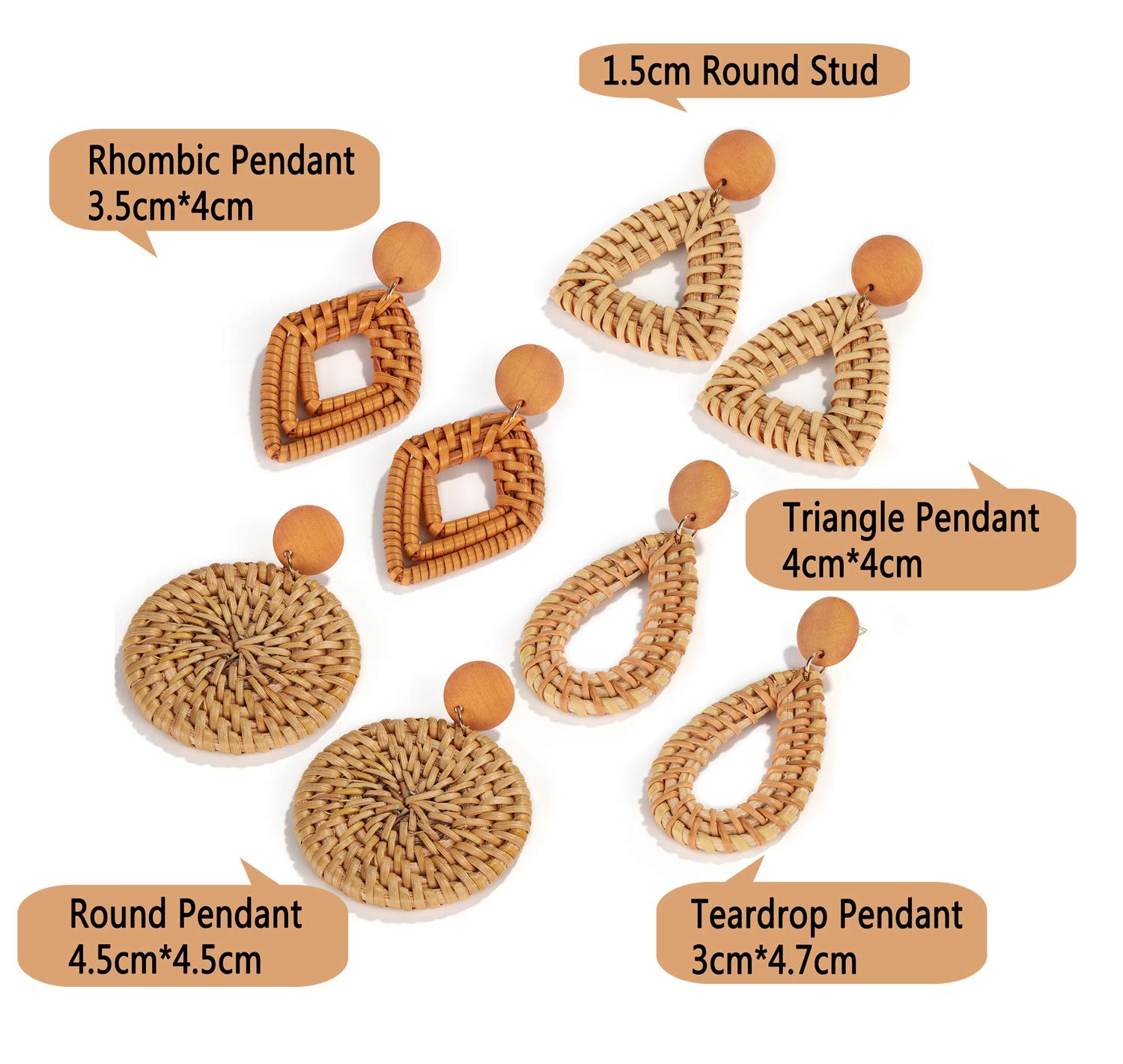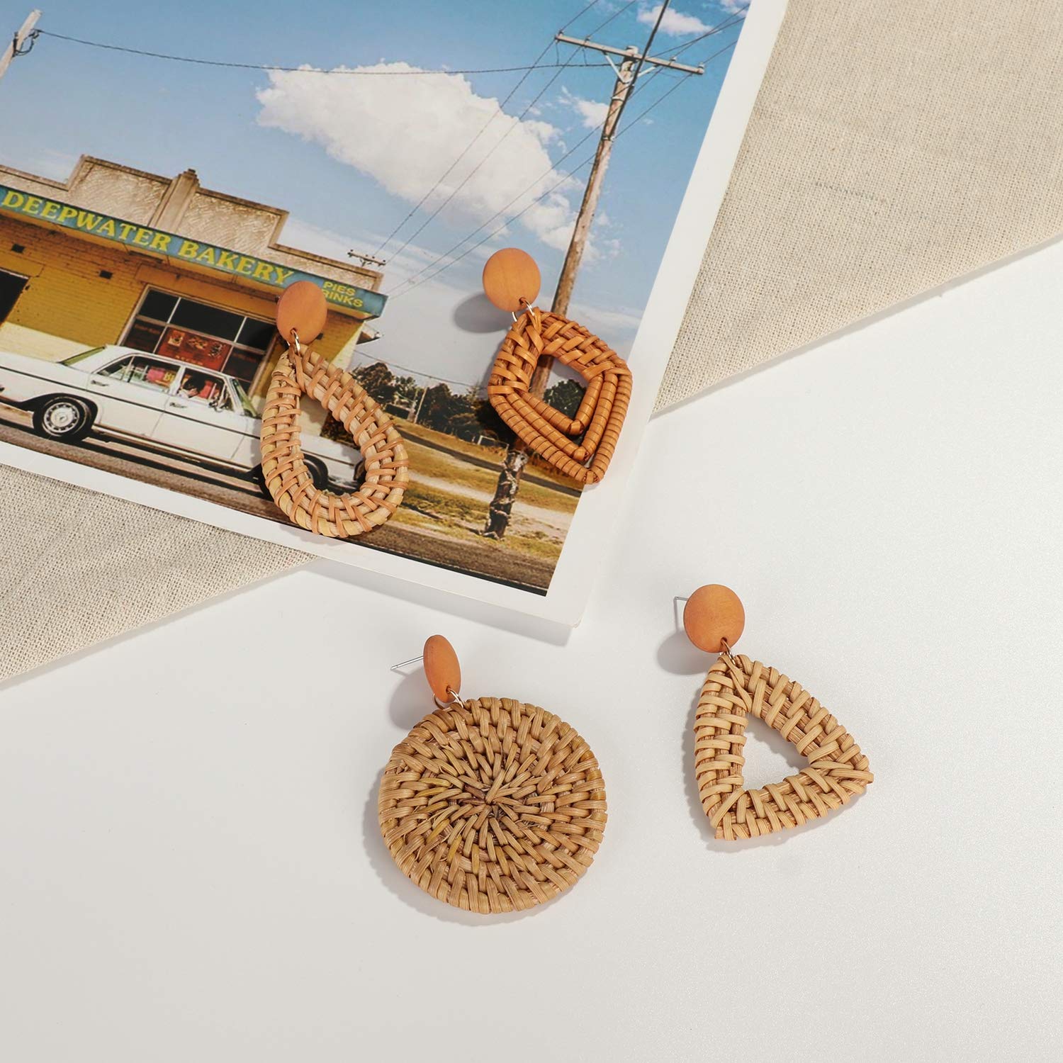 | ♦Size♦ Round Stud Diameter:1.5cm. Triangle Drop Earrings: 4cm X 4cm;Teardrop Earrings:4.7cm X 3cm;Rhombic Drop Earrings:4cm X 5cm;Round Earrings:4.5cm X 4.5cm. ♦Material♦ These statement earrings are made from 100% natural rattan fiber with elaborate handwoven knit by Artisans, handmade, natural, unique and chic. ATTENTION -- each handmade lightweight drop earring is one-of-a-kind and will have a slight color and pattern variation than the photograph. ♦Best Gift for Ladies♦ These Weave Earrings are perfect gift idea for wife, mother, girlfriend, lover on birthday, anniversary, Christmas, mother's day, Valentines' day, thanksgiving day etc. |