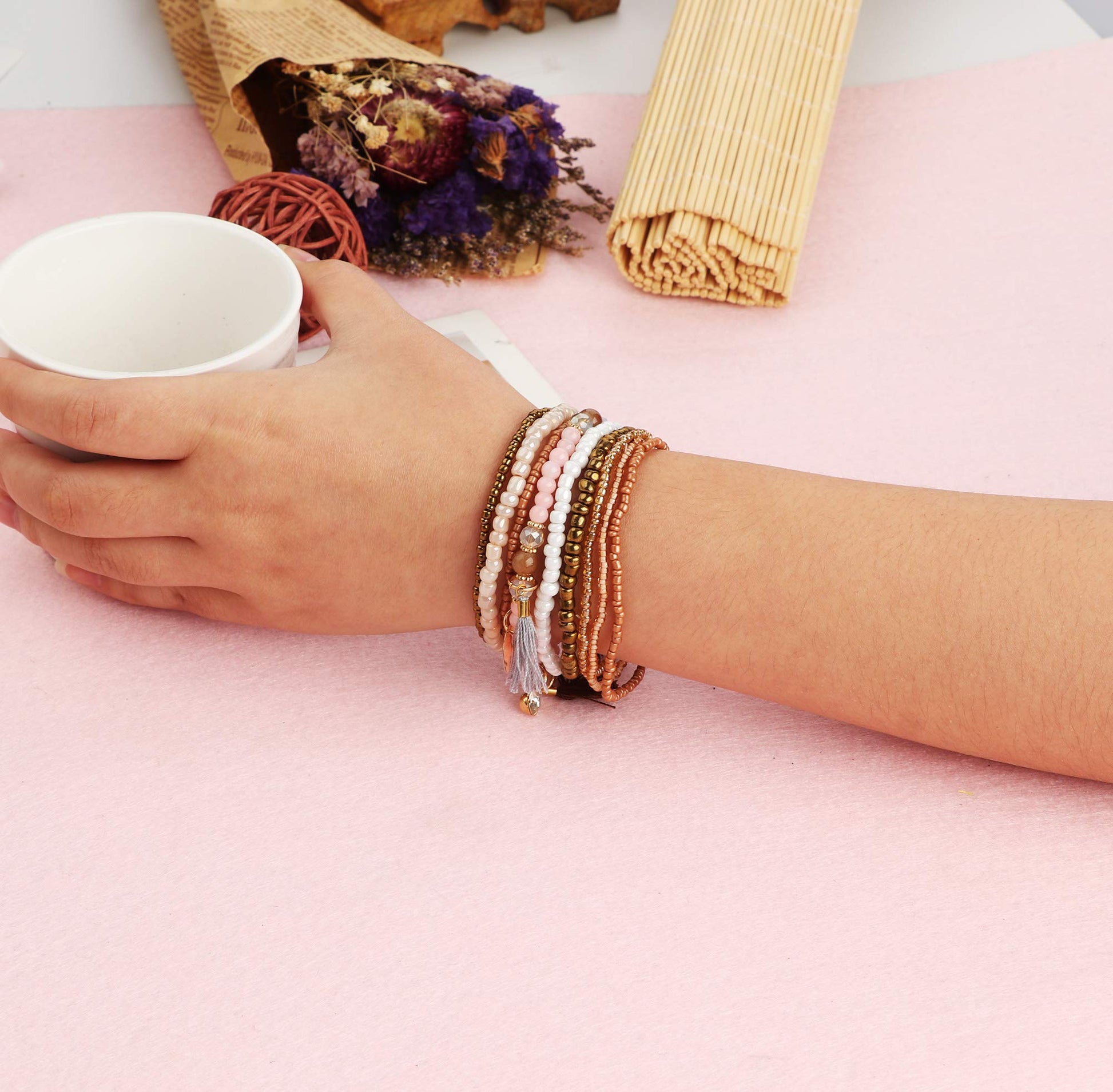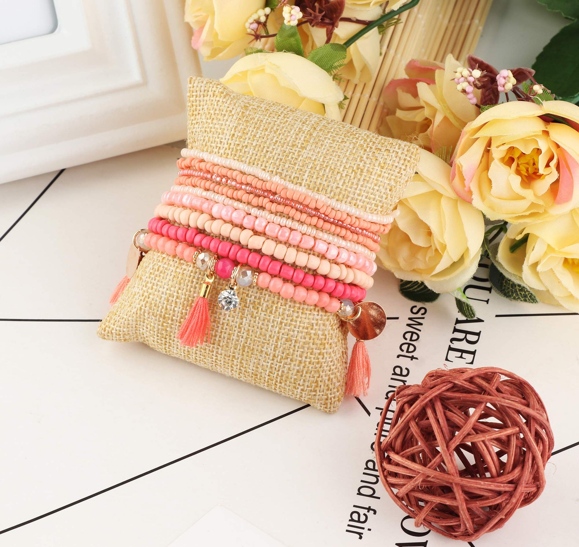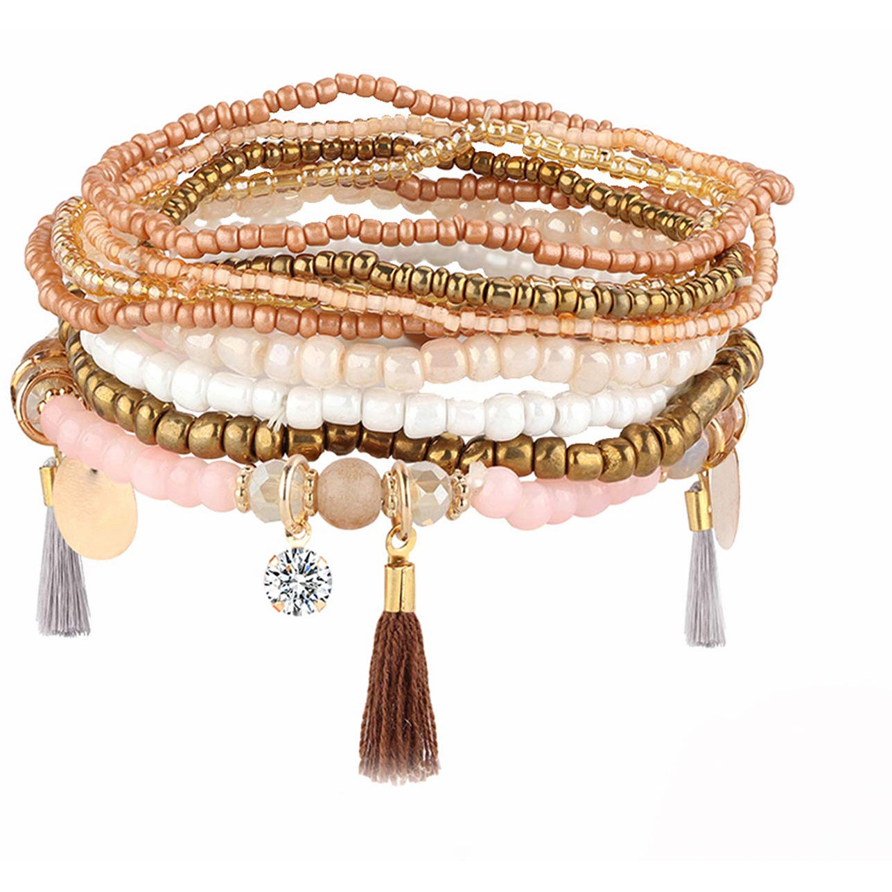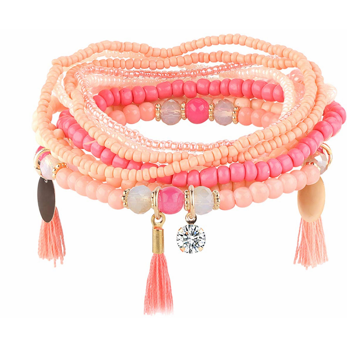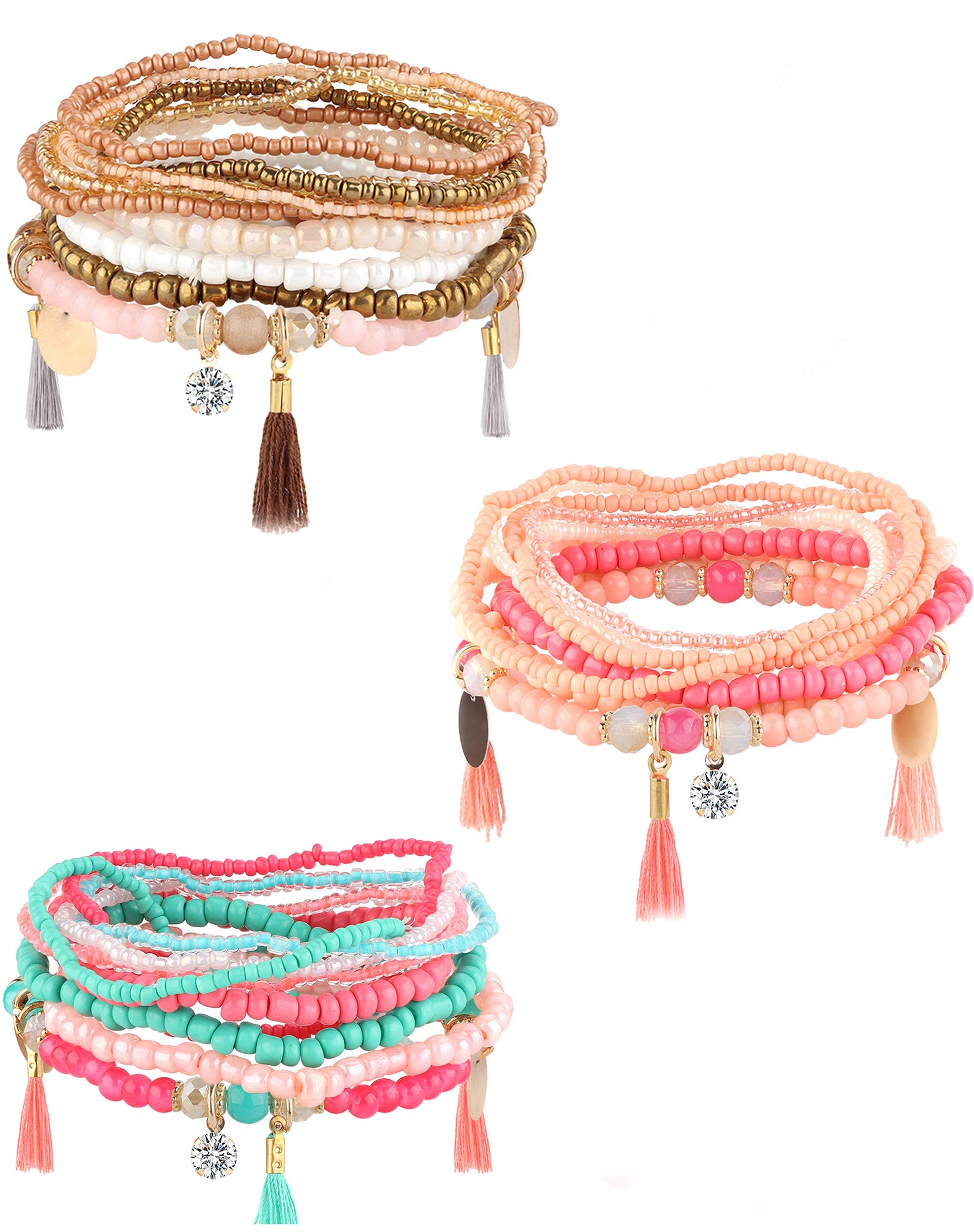 Multilayer Stackable Bracelets for Women Evil Eye Bracelets Multicolor Stretch Bead Bracelets for Women Girls
