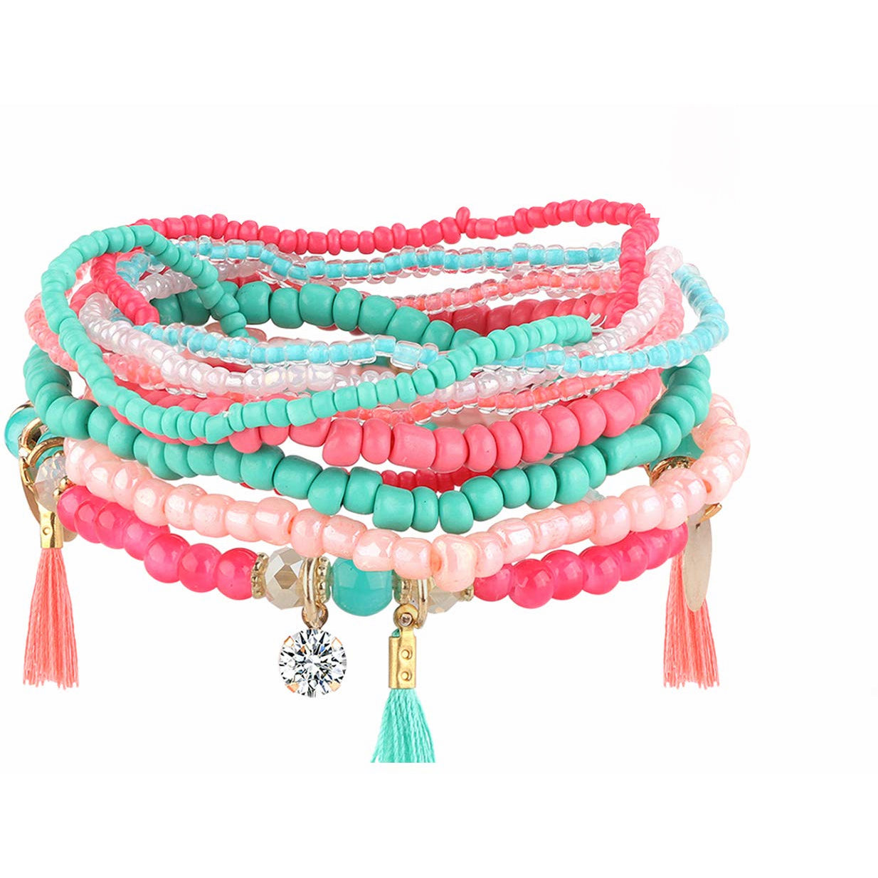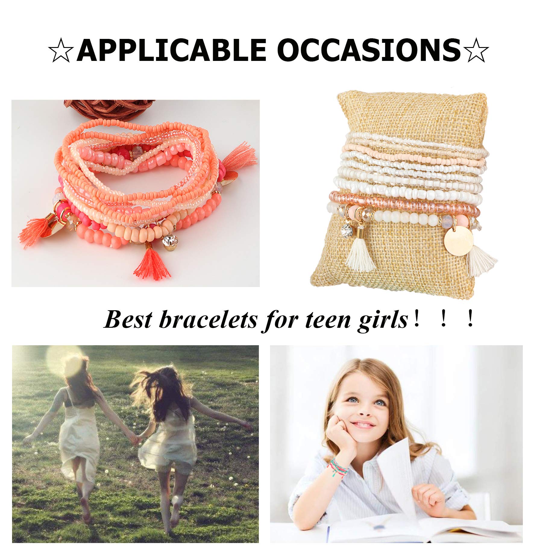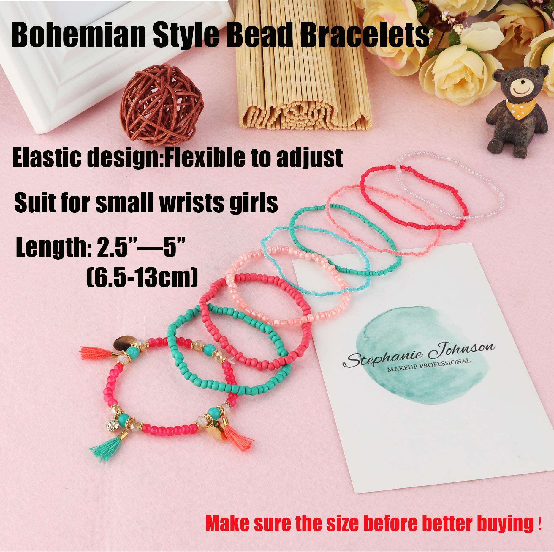 | [SIZE&MATERIALS]:Length- 2.5"-5"(6.5-13cm).The colorful bead bracelets made with environmental alloy and acrylic beads,safe and comfortable to wear,not easy to break,Stylish design to you. [APPLICABLE OCCASIONS]:These bead bracelets suit for daily wear,playing games with partners,informal gatherings with friends-bead and alloy parts will collide each other and make clear&melodius sound just like two little girls are playing. [BEST GIFT CHIOCES]:These mixed-color style bracelets are very great as gifts to send someone,like little girls,daugthers,niece,youger sister and so on.Especially Christmas is coming,these are good gift choices to little younger girls. |