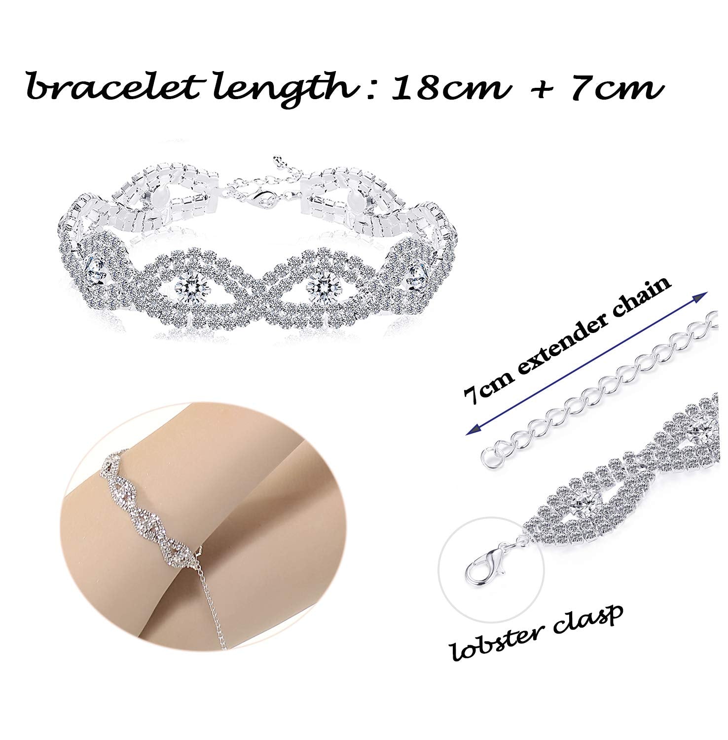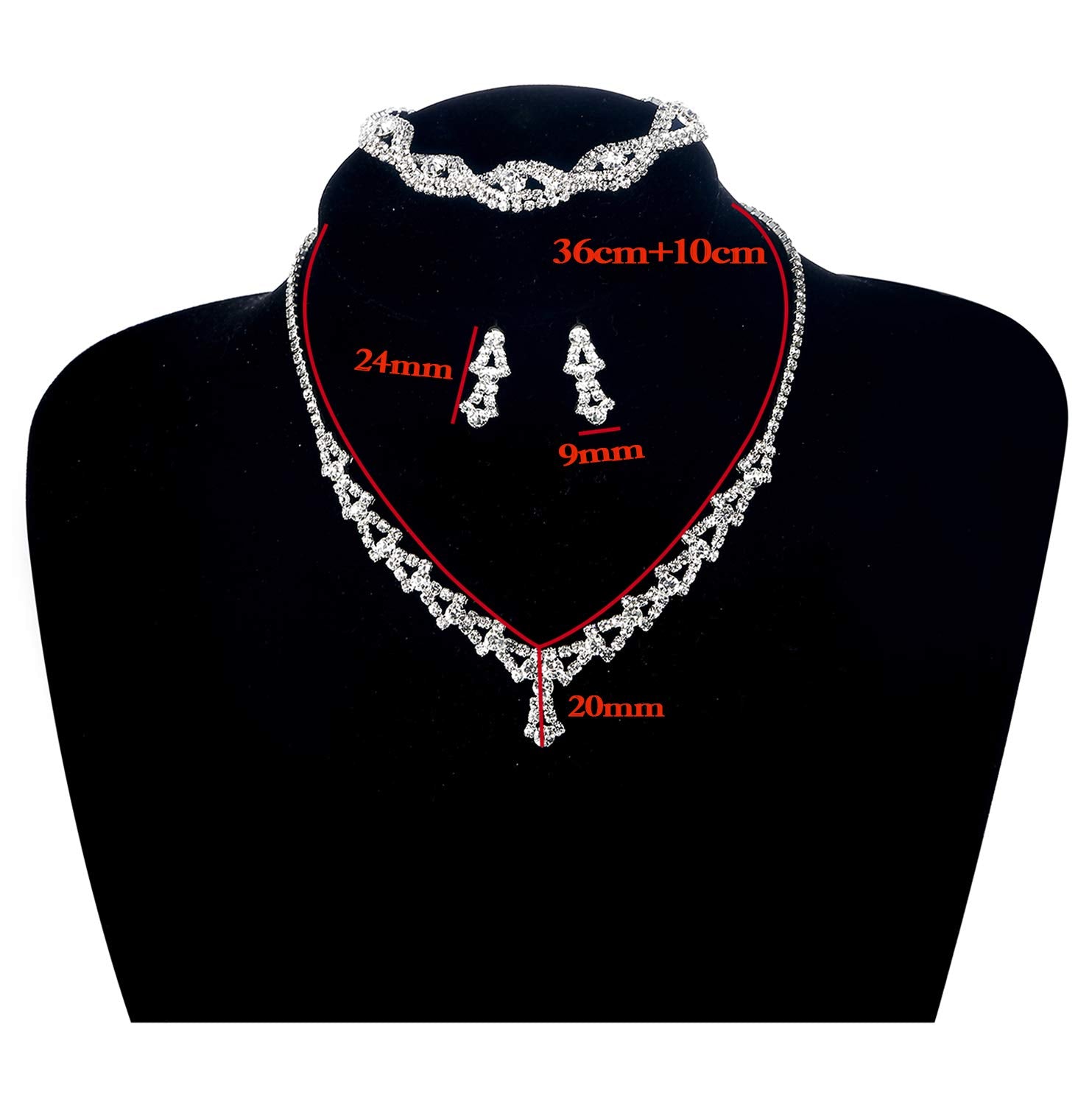 ❤ ABOUT SIZE ❤ Rhinestone necklace measures approximately 36cm(14.2") with 10cm(4") extender, matching stud earrings 24*9mm, rhinestone bracelet size:18cm (7") with 7cm (2.8") extender. Flexible design, convenient to adjust