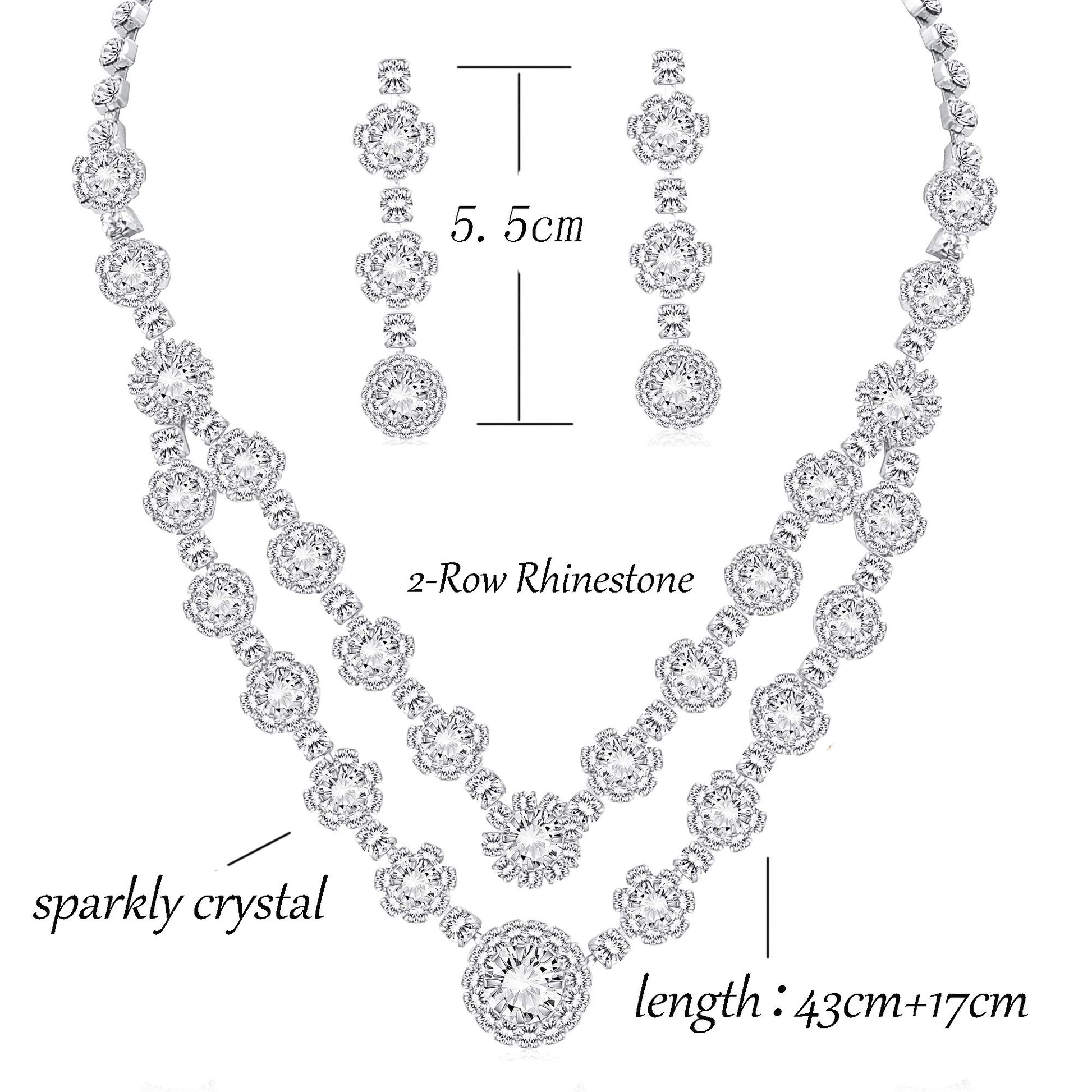 Silver Jewelry for Women-Choker Necklace Jewelry Sets.2-Row Rhinestone Necklace Link Bracelet Flower Dangle Earrings, With a Fabulous Design and Solid Construction.The Classic Jewelry Collection.Can be Worn with Classy Casual with Formal Attire or Wedding Dress, Never Goes out of Style.