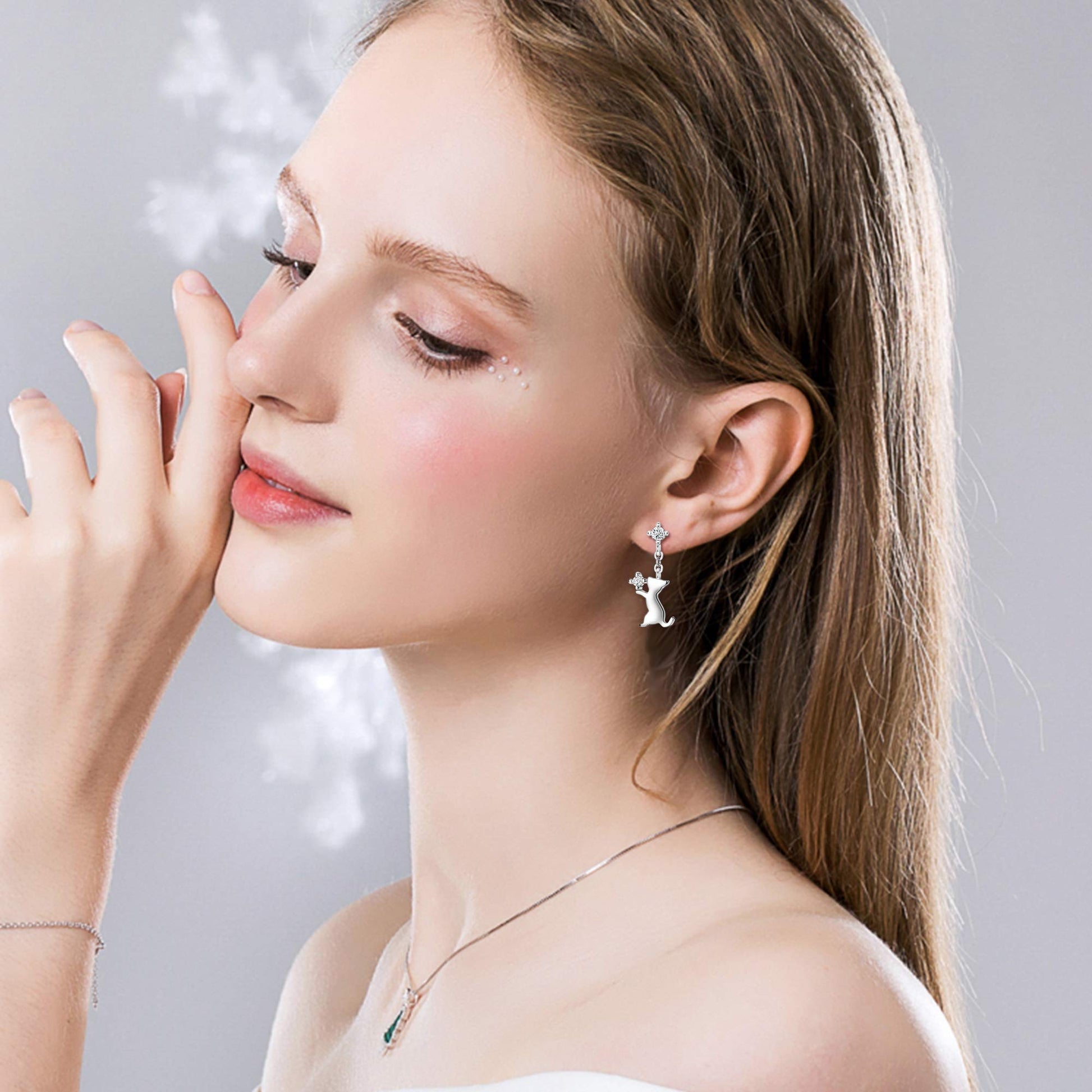 🐱STERLING SILVER CAT EARRINGS SIZE🐱Cat: 7 X 9mm, CZ: 2mm, total length: 15mm.