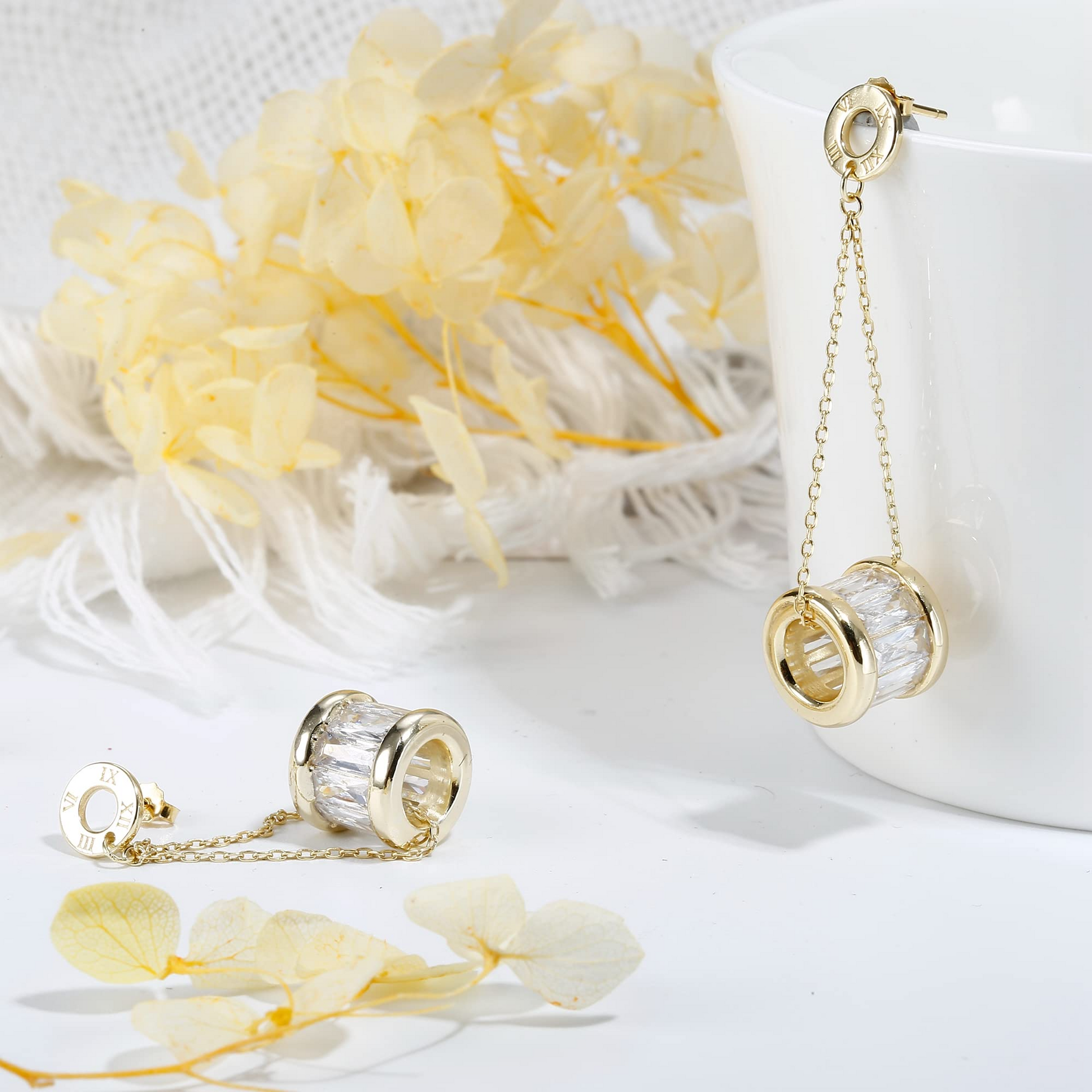 Pendant diameter: 0.49”*0.49''*0.44”(12.5MM*12.5MM*11.1MM). Roman numerals dot diameter: 0.31”(8MM). Total length of earrings: 1.89”(48MM).Dangle stud earrings post: 20G=0.8MM. Make a surprise for someone important or yourself.