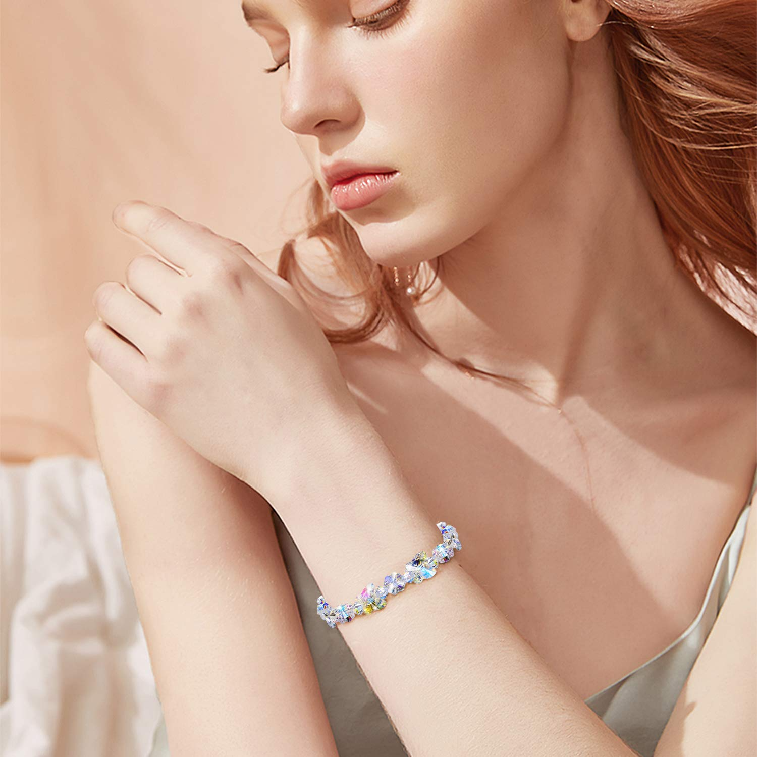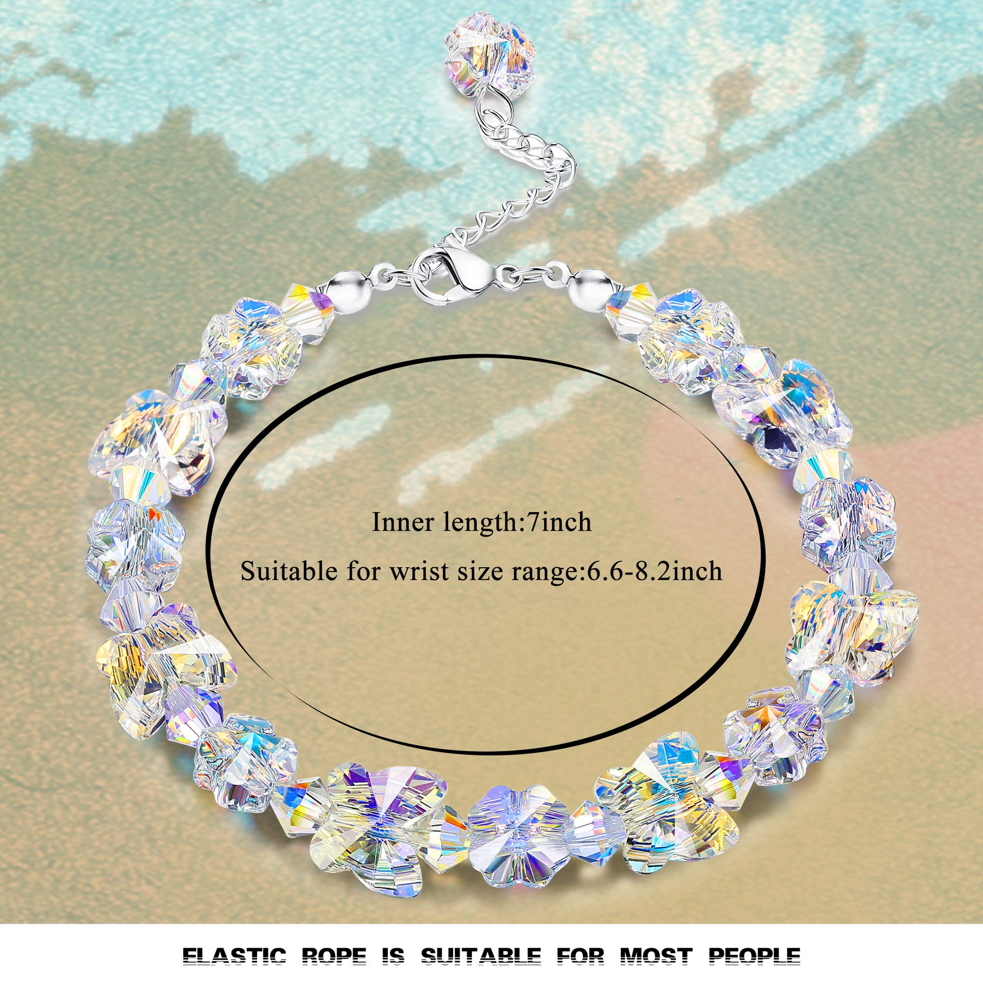 Bracelet length: 7" +2” extender chain (17.8+5cm). Made of elastic rope and metal chain, adjustable size fit to most women and girls.