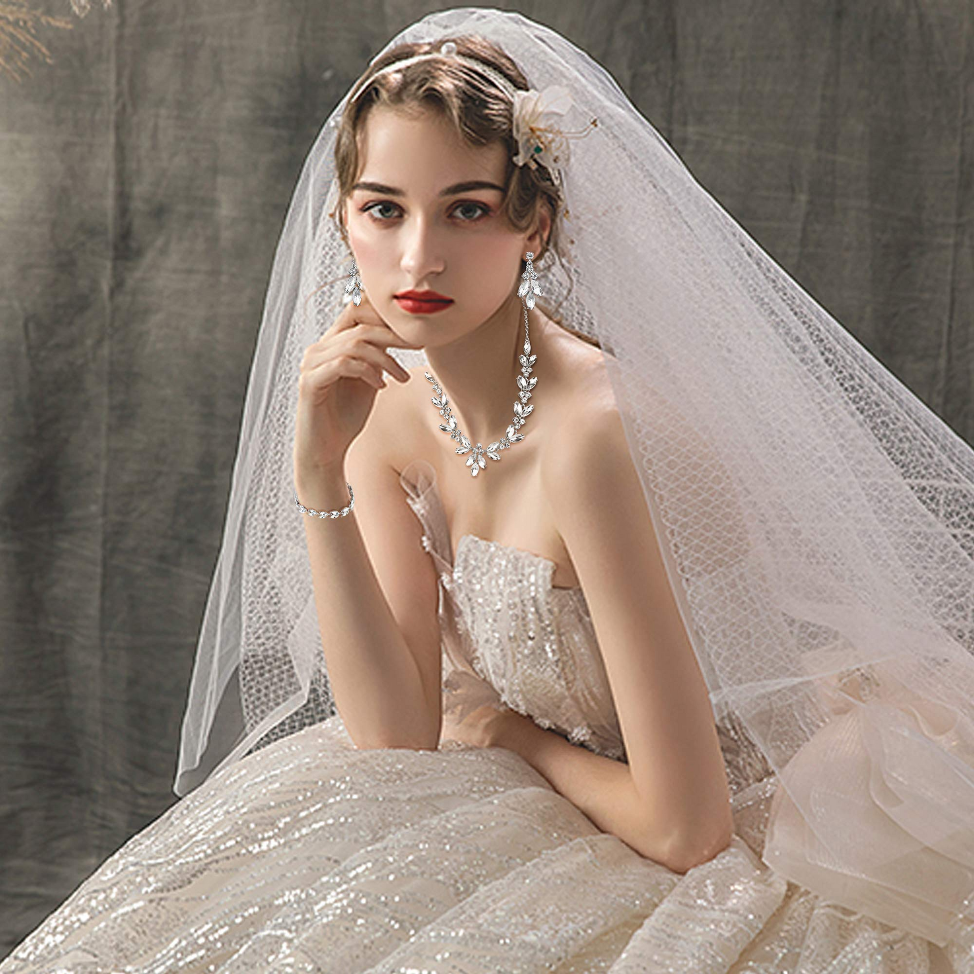 Wedding Jewelry Set Is Made Of Skin-Friendly Material, Light Weight And Comfortable To Wear. Necklace Length 17.7'' + 2'' Extension Chain, Earrings Length 1.77''. Suitable For Any Occasion, Such As Wedding, Party, Prom, Party And Any Other Occasions You Want To Dress Up Grandly.