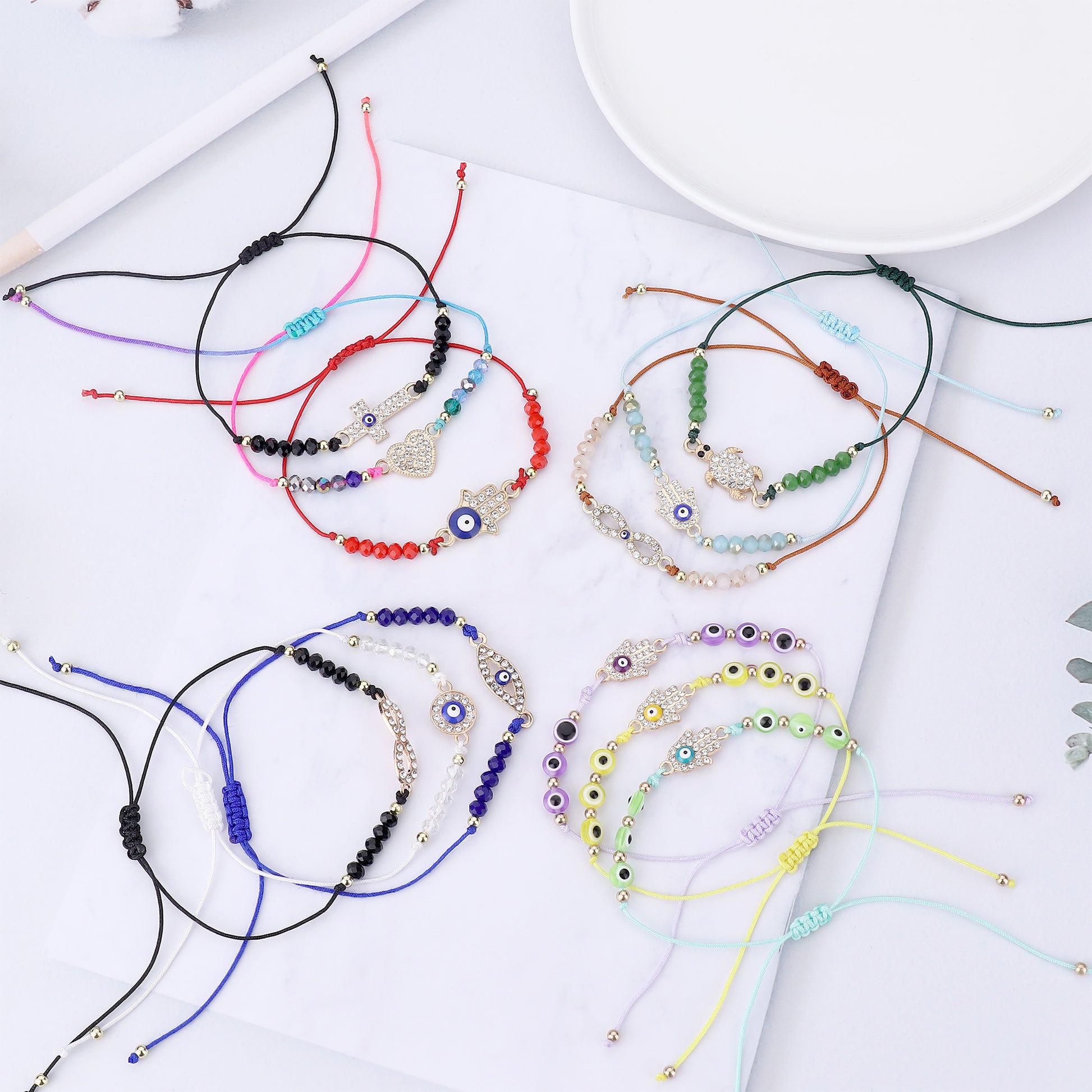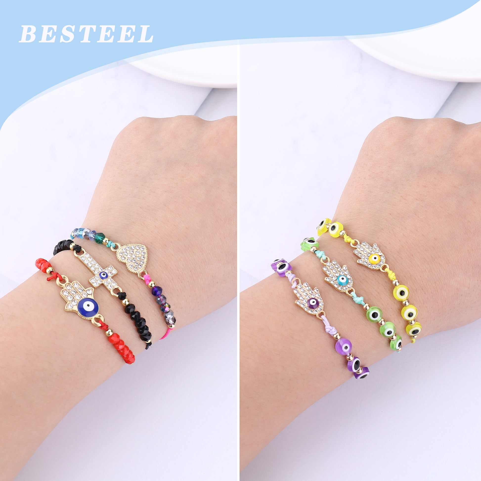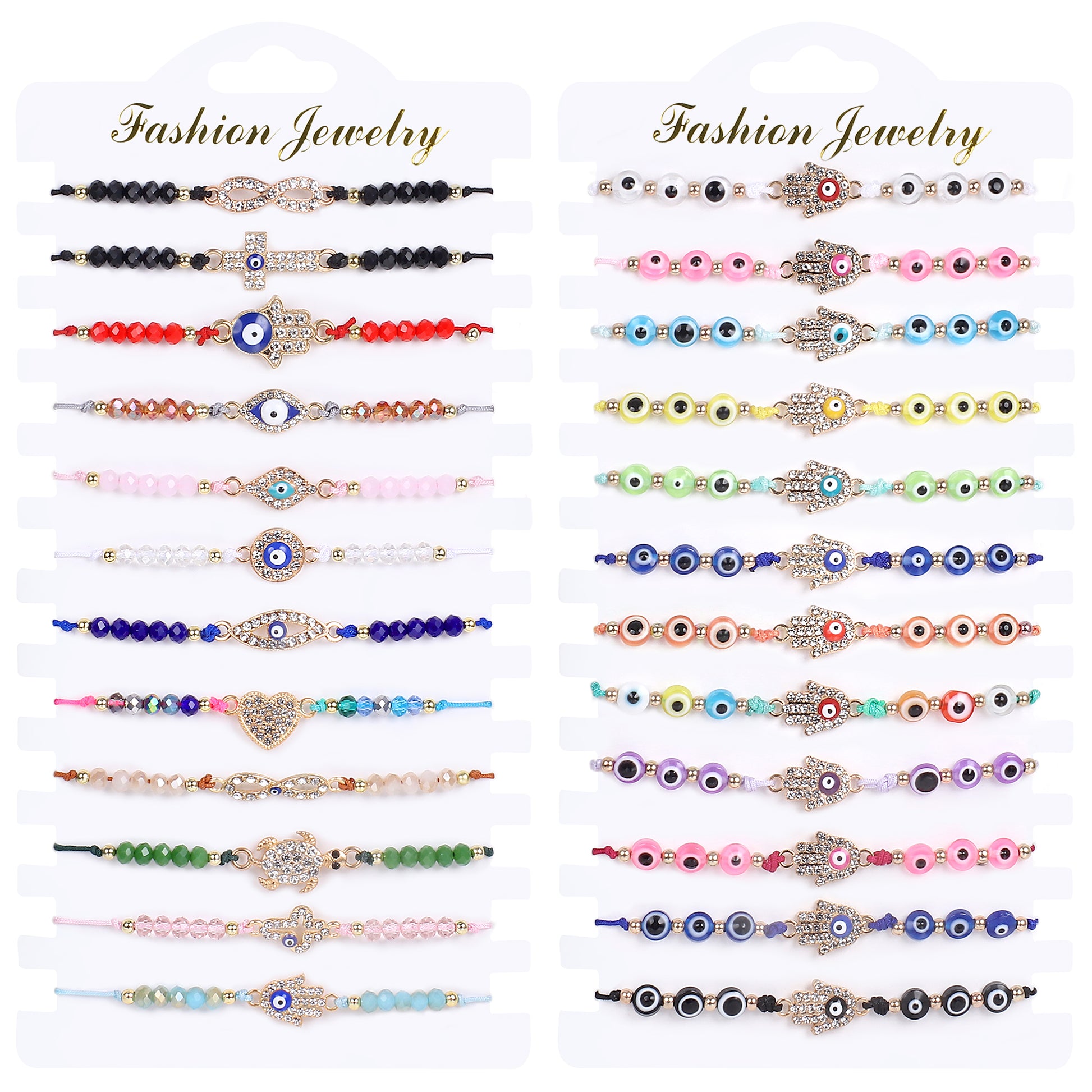 DE OJO 24 PCS COLORFUL EVIL EYE BEADED BRACELETS HAMSA HANDMADE BRAIDED LUCKY EYE JEWELRY FOR WOMEN GIRLS