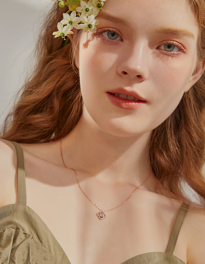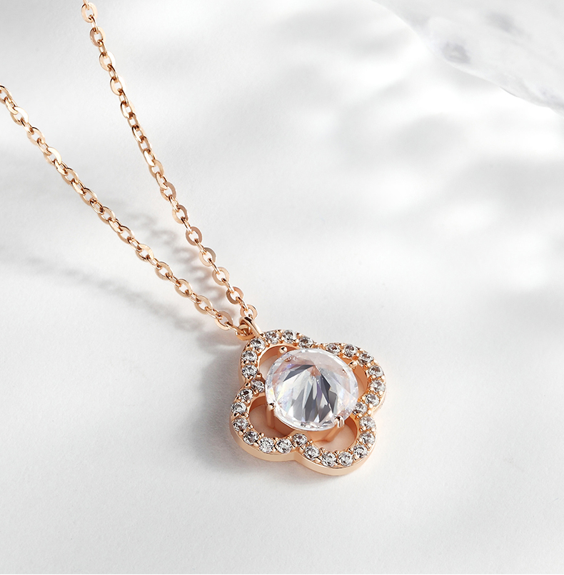 This necklace is inspired by the four-leaf clover which signify lucky and blessing. Using the shinning stones to decorate the leaf makes the perfect balance between elegant and beauty. Crafted in sterling silver, this necklace pedant showcases a round cut stone standing in the four-prong setting to attract eye. A shimmering token of your affection, this necklace is certain to be appreciated.